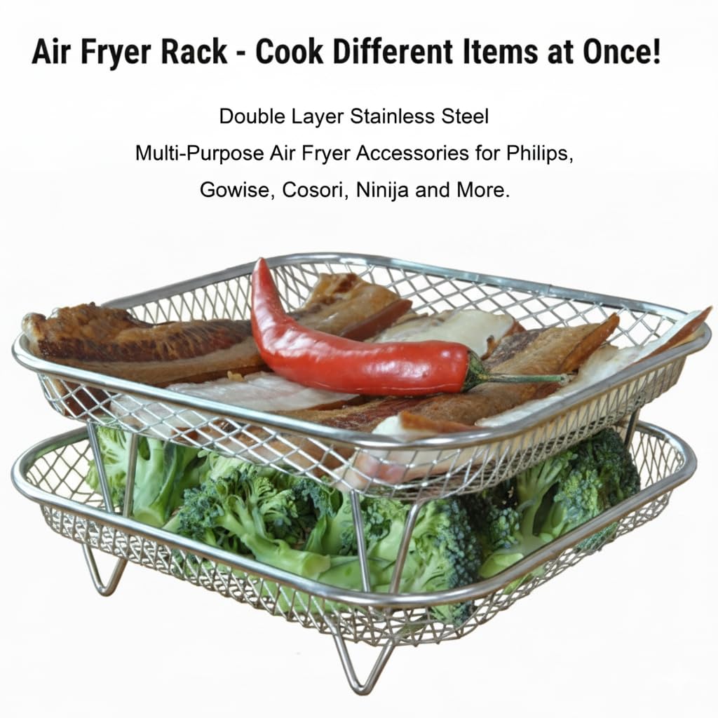 Informations sur le produit : Nom du produit : grille de cuisson à 2 couches Friteuse à air chaud. SUS ensemble de quincaillerie de salle de bain | E... – Grandado Nous vous proposons un choix varié d Profitez pleinement de l'espace : conçu avec trois couches d'espace pour mettre de la nourriture pour vous. Ainsi, vous pouvez profiter d'une alimentation saine sans soucis Matériau : acier inoxydable., Fonctionnalités: 1., Matériaux de qualité alimentaire de haute qualité, utilisation complète de l'espace., 2., Trois couches peuvent être empilées, aucune installation nécessaire, facile à utiliser Contenu de l'emballage : 2 supports pour friteuse à air. Matériau de qualité alimentaire : fabriqué en acier inoxydable 304 de qualité alimentaire, sûr, non toxique et durable, empêche la rouille et résiste à la chaleur. Accessoire parfait pour la friteuse à air chaud : peut être utilisé dans la friteuse à air, le four de friteuse à air pour cuire ou cuire divers aliments, tels que des pieux, du poulet, du poisson, du bacon, des légumes, des frites et plus encore, peut également être utilisé comme support de déshydrateur 4 supports pour friteuse à air. Pour Russell Hobbs Philips 6,2 L/8 L/Ninja 5,7 L/COSORI 5,5 L-6,4 L Airfryer Grill Air Fryer XTDMJ Racks Air Yer à 2 Couches - Accessoires Square 304 Grille Pour Air Fryer Matériau de qualité alimentaire : fabriqué en acier inoxydable 304 de qualité alimentaire, sûr, non toxique et durable, empêche la rouille et résiste à la chaleur. Ainsi, vous pouvez profiter d'une alimentation saine sans soucis. Grille pour friteuse à air chaud, plaque de cuisson Air... Déshydrateur - FOLAYA - Cosori Air Fryer - Acier Inoxydable 304 - Multi