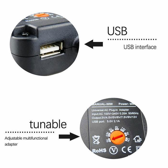 Un adaptateur peut être utilisé pour plusieurs appareils. 【Plusieurs fiches d'adaptateur CC】Cette Adaptateur D'alimentation dispose de plusieurs connecteurs couramment utilisés, que vous pouvez choisir parmi 2,5*0,7 mm, 3*1,1 mm, 3,5*13,5 mm, 3,5*15 mm, 5*2,1 mm, 5,5*2,5 mm. Puissance maximale 2A 30W. Adaptateur Secteur 3v pas cher - Meilleures ofes neuf et occasion Dispositif de pointage périphériques code ean: 9054806628419 rubrique principale périphériques: dispositif de pointage en-tête ance - Informatique - 9,37 ✔Adaptateur D'alimentation et convient à la plupart des appareils électroniques ménagers tels que les caméras de vidéosurveillance, les moniteurs pour bébé, les bandes lumineuses LED, les petits appareils électroménagers 3-12 V. ✔Cette Adaptateur D'alimentation offre plusieurs tensions optionnelles, telles que 3 V, 4,5 V, 5 V, 6 V, 7,5 V, 9 V et 12 V. bandes lumineuses LED et plus encore. 30W Adaptateur D'alimentation, Alimentation Universelle, Adaptateur Universel AC A DC Transformateur D'alimentation Avec 10 Connecteurs DC Pour 3V - 12V Appareils Ménagers Éclairage Led Moteur DC Caractéristiques: ✔Cette Adaptateur D'alimentation est faite de matériaux de haute qualité et dispose d'une puce intelligente intégrée pour éviter les surtensions, ce qui est sûr et fiable. Vous pouvez facilement obtenir la tension souhaitée en tournant le bouton, par exemple 3 V 4,5 V 5 V 6 V 7,5 V 9 V 12 V. La puce de protection de sécurité intelligente intégrée offre une protection contre les courts-circuits, une protection contre la surchauffe, une protection contre les surtensions, une protection contre les surintensités et une protection contre les surtensions. Chargeur Rasoir Braun 30W Adaptateur D'alimentation, Transformateur Connecteurs Alimentation Universelle 【Sûr et haut de gamme】Adaptateur D'alimentation est fabriquée dans un matériau de haute qualité avec une finition exquise. Adaptateur Secteur 3V à 12V: Ce chargeur universel permet un réglage facile de la tension en 7 niveaux (3V, 4.5V, 5V, 6V, 7.5V, 9V, 12V). Avec une sortie jusqu’à 1200mA, il alimente vos petits appareils comme routeurs, LED ou babyphones en toute sécurité.Alimentation 12V Fiable: Doté de protections contre courts-circuits, surtensions et surchauffes, cet adaptateur secteur garantit une... Dispositif de pointage Périphériques Code EAN: 9054806628419 Rubrique principale Périphériques: Dispositif de pointage En-tête / Fabricant: Générique Origine_import: All-in-one Titre: Adaptateur universel d'alimentation AC/DC Adaptateur chargeur 3v 4.5v 6v 7.5v 9v 12v @produit numérique3679 Vous pouvez utiliser le chargeur sans aucun souci. 【Largement utilisé】Adaptateur D'alimentation de 30 W convient à la plupart des besoins d'alimentation CA/CC pour les appareils électroniques domestiques et de bureau de 3 à 12 V, tels que le Bluetooth portable, les récepteurs sans fil, les jouets électriques, les consoles de jeux, les haut-parleurs, les hubs USB, les refroidisseurs d'ordinateurs portables, les haut-parleurs externes. Durable, fiable, stable, petit et maniable. Caractéristiques: Entrée : 100 ~ 240 V CA, 50/60 Hz Tension de sortie : 12 V CC Courant de sortie : 2A maximum Puissance de sortie : 30W maximum Interface CC : 2,5*0,7 mm, 3*1,1 mm, 3,5*13,5 mm, 3,5*15 mm, 5*2,1 mm, 5,5*2,5 mm. La tension ne doit pas dépasser 5A, sinon l'alimentation sera endommagée.
