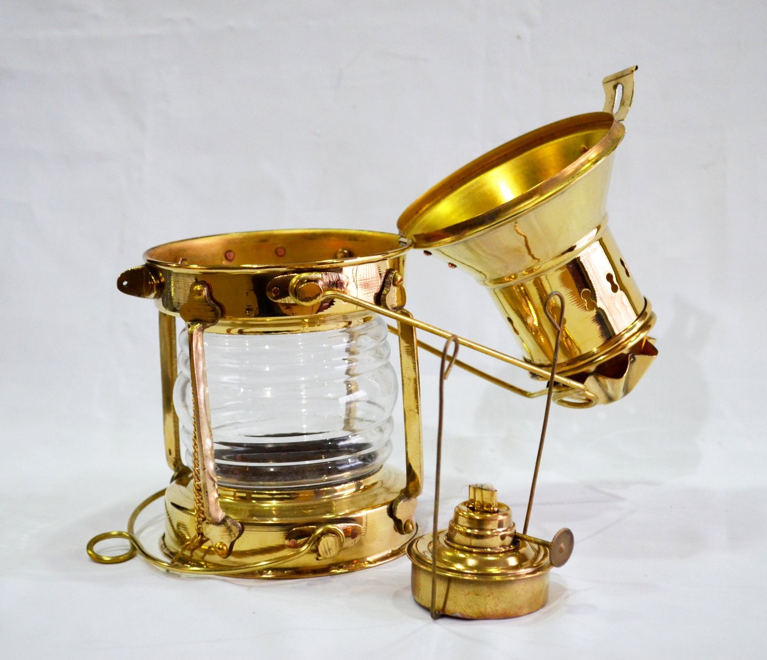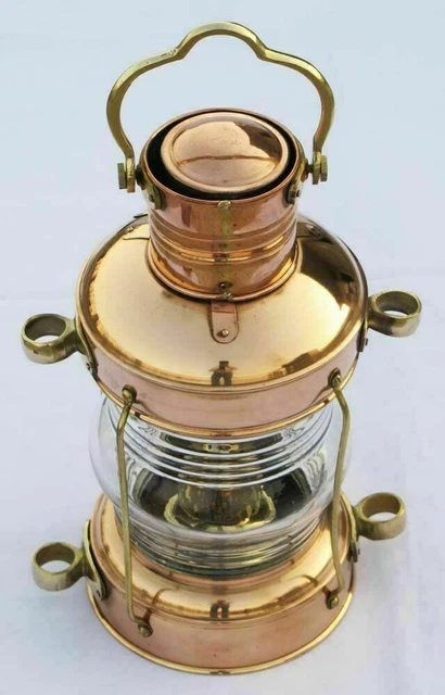 Cette belle lampe est entièrement fonctionnelle un brûleur à huile avec un verre de Fresnel rouge Lanterne nautique d'extérieur en laiton antique , Couleur : cuivre Matériaux : cuivre et verre L'abat-jour de la lampe suspendue s'inspire d'une lampe de bateau antique et dégage une atmosphère portuaire Réglable en hauteur grâce à une chaîne raccourcissable : parfait pour l'entrée, le balcon ou la terrasse Laiton véritable : résistant aux intempéries, inoxydable même sur les côtes Travail manuel : qualité supérieure Lmpe de lnterne de bteu ntique en cuivre et liton à tête de... Luminaire Marine Applique D'extérieur Carpi, Laiton, Largeur 18cm Lampe Bateau Marine Extérieur Ancienne lampe à huile pour bateau/bateau nautique pivotante à