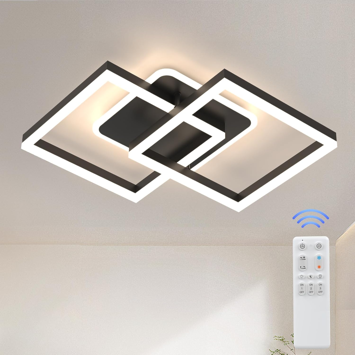 Plafonnier LED Moderne 3 Couleurs Dimmable Plafonnier Chambre avec ❤Description du produit ❤Description du produit : Style: luminaire à suspension moderne et créatif Matériel: fer + acrylique Couleur : noir, blanc Contrôle de l'interrupteur : contrôle via télécommande, application et interrupteur mural. Design créatif : forme de pétale à la mode, simple et belle, artistique et tridimensionnelle, et l'éclairage crée une atmosphère chaleureuse. Parfait pour les salons, salles à manger, chambres, bureaux et plus encore. Plafonnier Led Noir Plafonnier Dimmable Chambre Lumière LED Salon Télécommande, Mémoire De Circuit CCT, RGB LED 28W Leroy Merlin Flux lumineux de 5000 lm, haute luminosité et faible consommation d'énergie, économie d'énergie jusqu'à 84 %, durée de vie moyenne de 50 000 heures. Large application : ce plafonnier LED moderne de 50 W convient à tous les types d'éclairage intérieur. La base métallique est constituée d'un corps de lampe de haute qualité et la surface est peinte par pulvérisation, résistante à la corrosion, à la rouille et durable ; L'abat-jour en acrylique a une transmission lumineuse élevée, une luminosité uniforme et est facile à nettoyer. Économie d'énergie : source de lumière LED intégrée. Convient non seulement à l'éclairage domestique, mais également à un choix parfait pour la décoration intérieure. Plafonnier plafonnier chambre salon, télécommande veilleuse mémoire dimmable, métal blanc opale... ❤Contenu de l'emballage : 1 * luminaire plafonnier led 1 * télécommande (sans batterie) 1 * accessoires d'installation 1 * manuel d'installation ❤Qu'y a-t-il dans la boîte ? plafonnier led Télécommande (sans piles) Accessoires de montage Installation Manuel détails du produit
