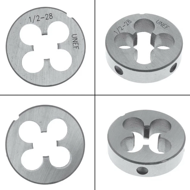 Filetage pointu et dur, résistant à l'usure. Contenu : 1 matrice de filetage ronde de 1 7/16-20 UN Aceteel M17 x 1,0 - Filière ronde métrique - Filetage à droite - M17 x 1,0 mm Applications: Used for processing or repairing external threads, can be used with die wrench or lathe mold base. Tips: Appropriate lubricating oil should be added to the cutting edge of the die during work to prolong the service life of the die. Package Include Conseils : une huile lubrifiante appropriée doit être ajoutée au bord tranchant de la matrice pendant le travail pour prolonger la durée de vie de la matrice. Burkit Matrice De Filetage Ronde 7/16"-20 UNF, Filetage De Machine Matériau : alliage d'acier, diamètre de coupe : 1 7/16, TPI : 20 dents par pouce, direction de coupe : main droite, classe de précision : 2 A. Applications : utilisé pour le traitement ou la réparation de filetages extérieurs, peut être utilisé avec une clé à matrice ou une base de moule. Matériau : fabriqué en alliage d'acier, haute dureté, forte résistance à l'usure et longue durée de vie. Peut traiter le cuivre, le laiton, l'acier A3, l'aluminium, la fonte et d'autres matériaux. Direction de coupe : main droite. Caractéristiques: - Taille: M...