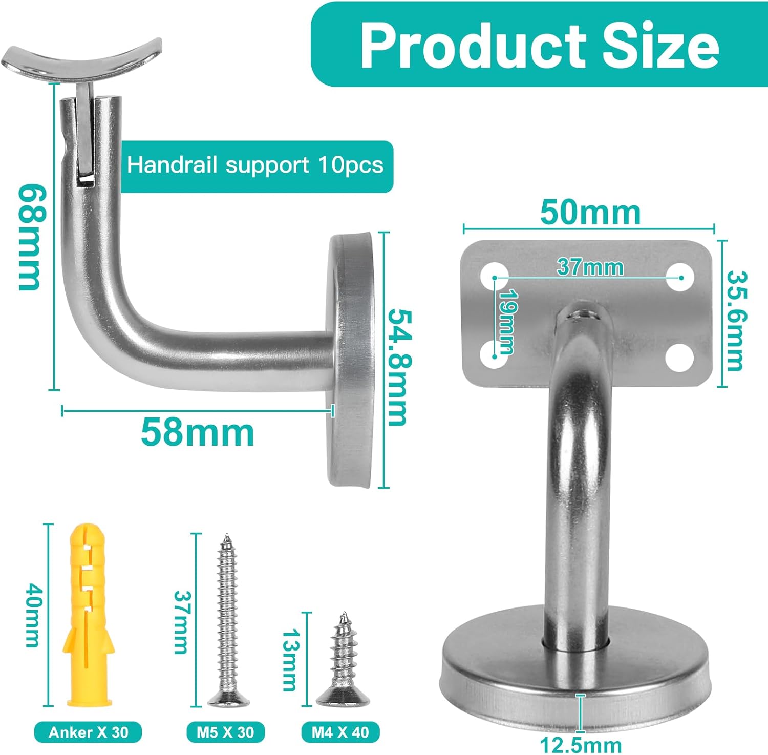 Notre porte-main courante est fabriqué en acier inoxydable 304 de haute qualité et offre une forte résistance aux intempéries et à la corrosion pour une longue durée de vie. Wall Connector Supports Réglables à Souder Pour Escaliers Flottants - Universels - En Acier Nu - Marque SRG - Modèle Mono Stinger Pont Elevateur Ciseaux Lot de 10 supports de main courante en acier inoxydable - Diamètre 50... Matériau : acier inoxydable 304, durable et antirouille. Le support de main courante est sûr et confortable et rend la vie plus confortable. La large application pour les projets de bricolage, les rampes d'escalier, les centres commerciaux, les canaux de protection incendie de bâtiment, les mains courantes, les couloirs, les mains courantes de bâtiment, les mains courantes intérieures et extérieures, les garde-corps, les escaliers et autres pièces en acier inoxydable en font un choix idéal pour une manipulation sûre et confortable. Angle réglable : la plaque de support incurvée vers l'intérieur du support de main courante soutient mieux la main courante et l'angle peut être ajusté en fonction de vos besoins. Son aspect exquis et sa longue durée de vie en font un choix idéal. Longueur : 65 mm Distance au mur : 55 mm Diamètre du trou : 5 mm Plaque de support : 49 x 29 mm. 【Taille】Diamètre du fond du support de main courante : 50 mm, Diamètre du trou : 5 mm, Distance du mur : 55 mm, Longueur : 65 mm, Panneau tactile: 49 × 29 mm. Ensemble pratique – 4 pièces. Dimensions : diamètre de la plaque de base 50 mm, diamètre du trou de vis 7 mm (convient aux vis M5), hauteur de la main courante... Acier Inoxydable - Supports De Main-courantes (9 Large application : la balustrade murale est très bien adaptée pour les projets de bricolage, les rampes d'escalier, les centres commerciaux, les canaux de protection incendie de bâtiment, les mains courantes, les couloirs, les mains courantes de bâtiment, les mains courantes intérieures et extérieures, les garde-corps, les escaliers et autres pièces en acier inoxydable.
