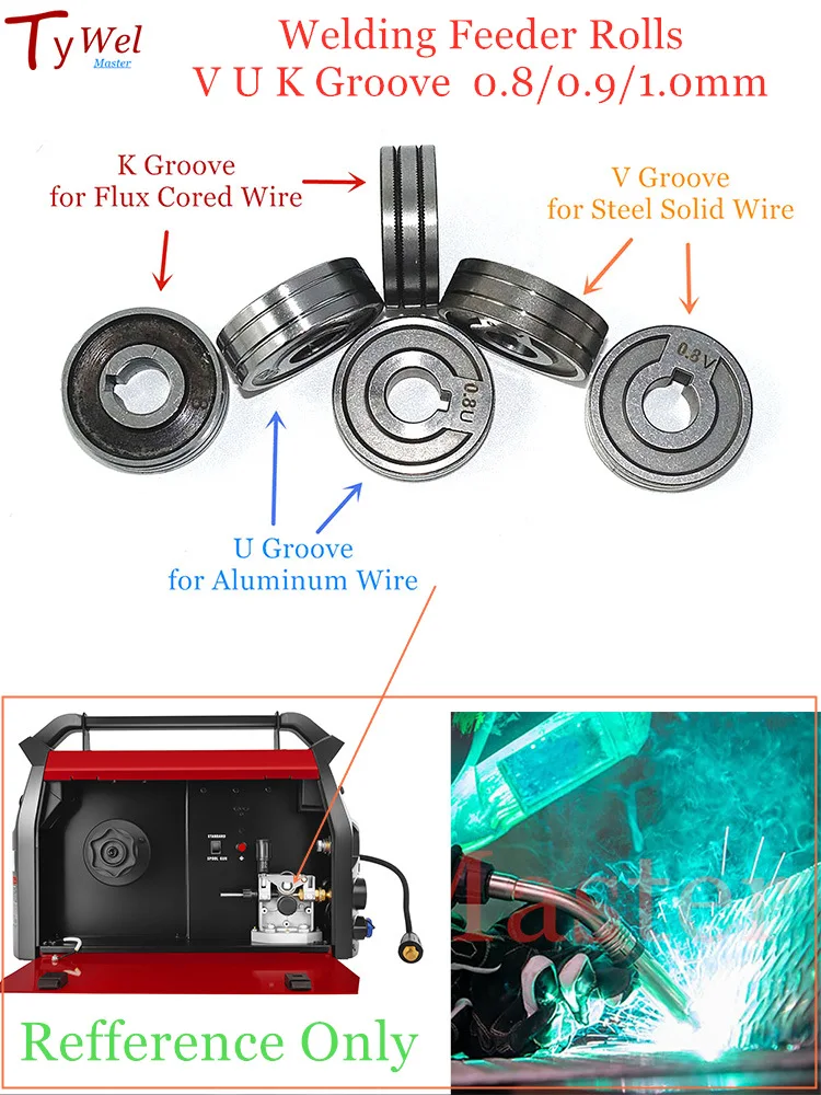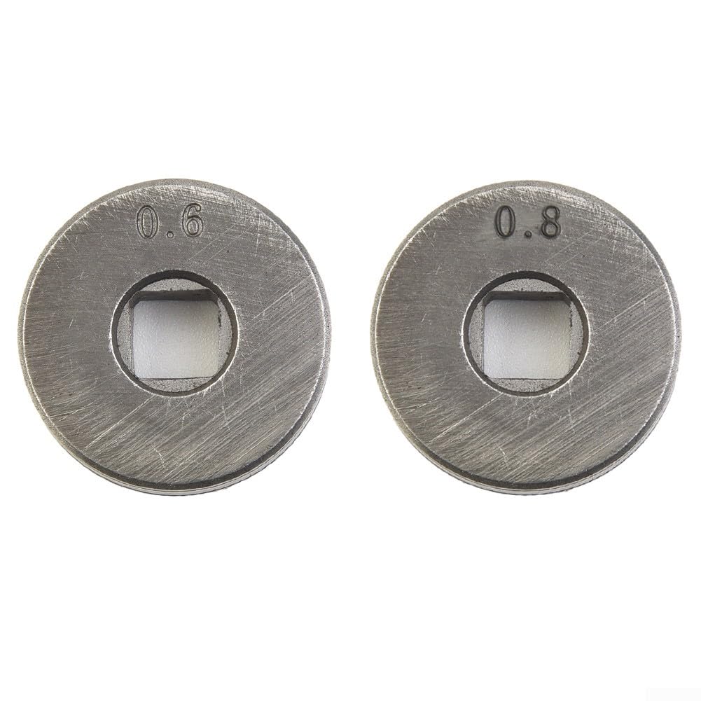 Rouleaux d'entraînement à fil avec rainure moletée de 25 mm de diamètre pour alimentateur de fil SSJ16 MIG MAG soudeurs pièces d'équipement Matériau : acier de haute qualité. Méthode d'utilisation : convient à de nombreux soudeurs MIG/MAG standard avec machine d'alimentation en fil de soudage SSJ16., Installation : haute précision et haute résistance, rapide et facile à installer. Rouleau d'alimentation durable usiné avec précision pour soudeurs OTC – Convient aux fils de 0,8 à 1,0 mm. S'adapte parfaitement aux machines à souder OTC, assure un fil lisse pour des soudures précises. Ajustement parfait pour les machines à souder OTC, solution de fil durable et précise pour tous vos besoins de soudage Voir plus de... Matériau : acier de haute qualité. · Standard : 25 mm de diamètre extérieur et 7 mm ID (centre carré), rainure moletée de 0,8/1,0 mm, épaisseur du rouleau de 7,5... VILLCASE Lot De 2 Rouleaux D'entraînement De Fil 0,6/0,8 Mm Avec Consommable Soudure Acier Fil à Souder MIG MAG STAHLWERK ER70S-6