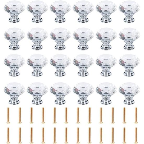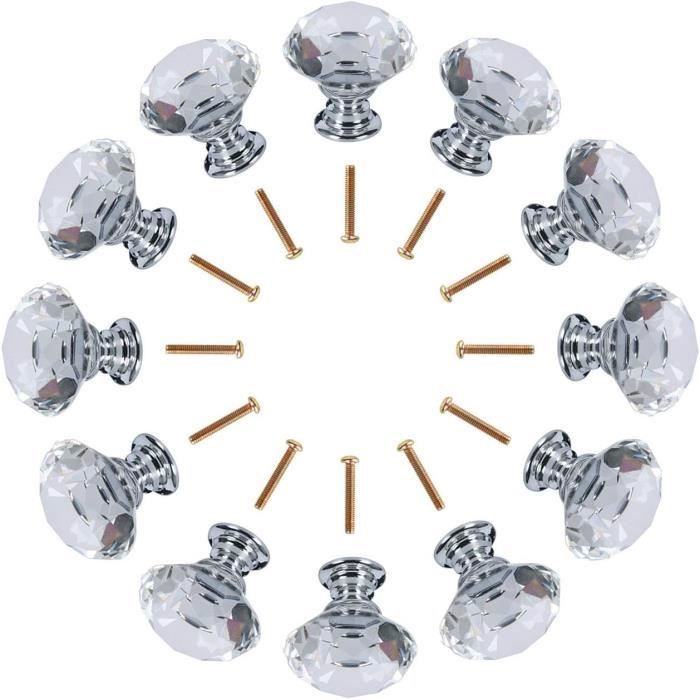plusieurs d'entre eux sont utilisés afin d'égayer la pièce et de la rendre élégante., 4., Structure solide et aspect brillant : le cristal est fixé à la base avec une puissance puissante. Nous vous remercions de votre compréhension Le cristal est fixé à la base avec une colle puissante. BOUTON DE MEUBLE,green--Poignée de meuble en verre cristal coloré en Diamètre du cristal : 50 mm. Un moyen simple, pratique et économique de décorer une pièce élégante. Boutons de porte en verre cristal - chaque bouton est livré avec un boulon à vis de 32 mm prêt à fixé à la porte ou au meuble de votre choix... Il scintille et est très beau, ce qui a un effet magique dans la décoration. Sensation agréable dans la main : le bouton en cristal est confortable et a une texture parfaite. Diamètre du cristal : 50 mm Très joli, tendance et économique pour décorer votre maison ou votre bureau. Contenu de l'emballage : 5 boutons, vis fournies pour l'installation. Sensation agréable dans la main Lot De 5 Boutons De Placard En Verre Transparent De 50 Mm, En Matériau : verre cristal et alliage d'aluminium.