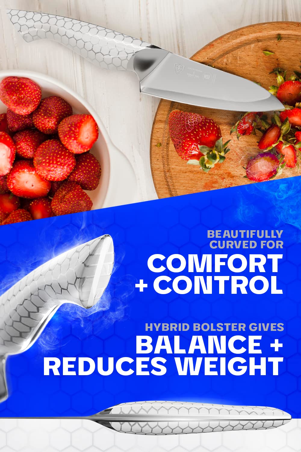 Renowned Dalstrong customer service. Large enough for breaking down smaller cuts of boneless meats and poultry, and light enough for slicing, dicing, mincing and chopping tough vegetables. To further enhance its non-stick properties and provide a unique ‘frosted’ look to its blade, each knife is perfected with a precision-based sandblast finish. This is perfect for pit masters and anyone who loves grilling or barbecue. See why chef's around the world trust and love, 'The Dalstrong Difference'., Dalstrong luxury packaging. Built for the modern chef who appreciates meticulously crafted, professional knives, that look and feel good, without any sacrifices to functionality. FCR110DW Couteau Frost Cutlery Crowing Rooster Lame Acier 3Cr13... The Frost Fire Series 7” Cleaver is the perfect balance of heft and precision. The Dalstrong Frost Fire Series is an elegant collection of premium light-weight, razor-sharp knives with an icy cold look and fiery performance. Included with each knife is a PU leather sheath with snap closure, designed to protect your knife and keep it safe and secure while on the go. DALSTRONG Couteau à pain dentelé - 20,3 cm - Série Frost Fire - Acier LIFETIME WARRANTY against defect. Shadow Black Chef Knife DALSTRONG Couteau Couperet - 7" - Série Frost Fire - Acier Inoxydable 10CR15MOV À Chromium Élevé - Finition Sandblast Dépoli - Poignée En Nid D'abeille Blanc - Gaine En Cuir Shogun Knife For added distinction, the pristine white resin handle is enclosed in aluminum mesh that provides improved durability and a stylish honeycomb finish. Rocksolid 100% SATISFACTION OR MONEY BACK GUARANTEE, try it risk free. The eye-catching Frost Fire Series is a high-performance collection of elegant, powerful, and icy-sharp kitchen knives that will take you further in the kitchen. Hand Forged in fire - Couteau de cuisine - Fabriqué à la main aux États... Fierce enough for breaking down smaller cuts of boneless meats and poultry, and delicate enough for slicing, dicing, mincing and chopping tough vegetables.