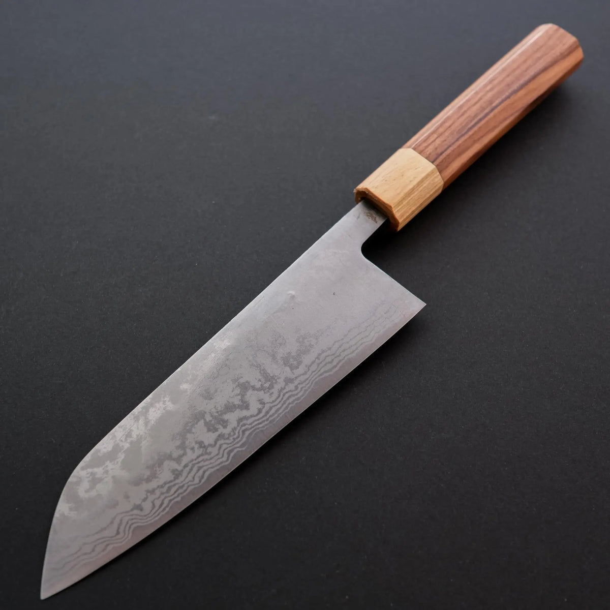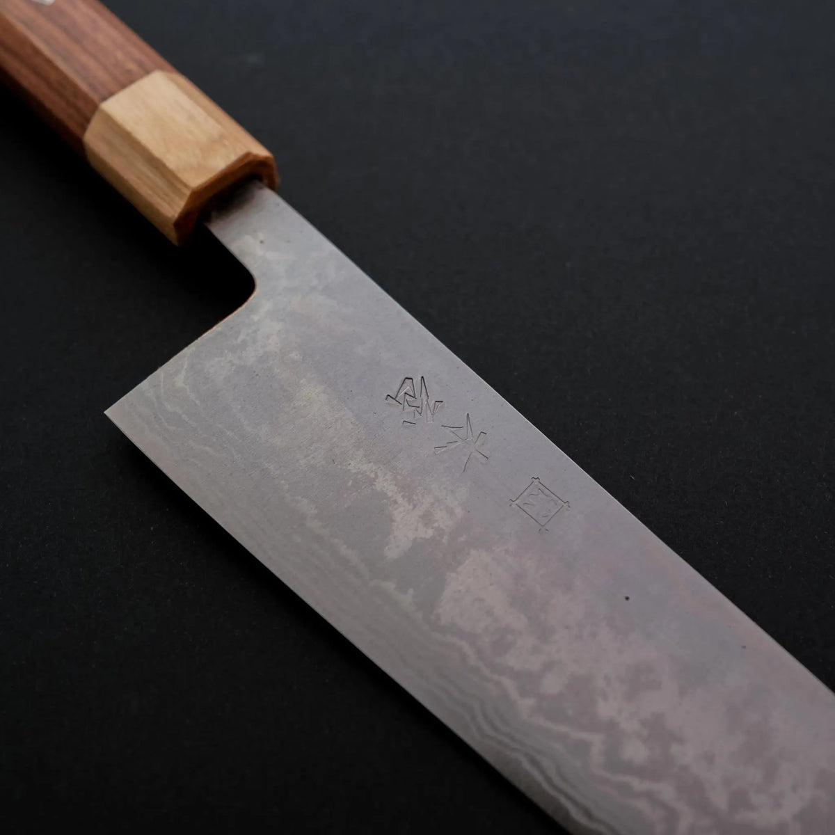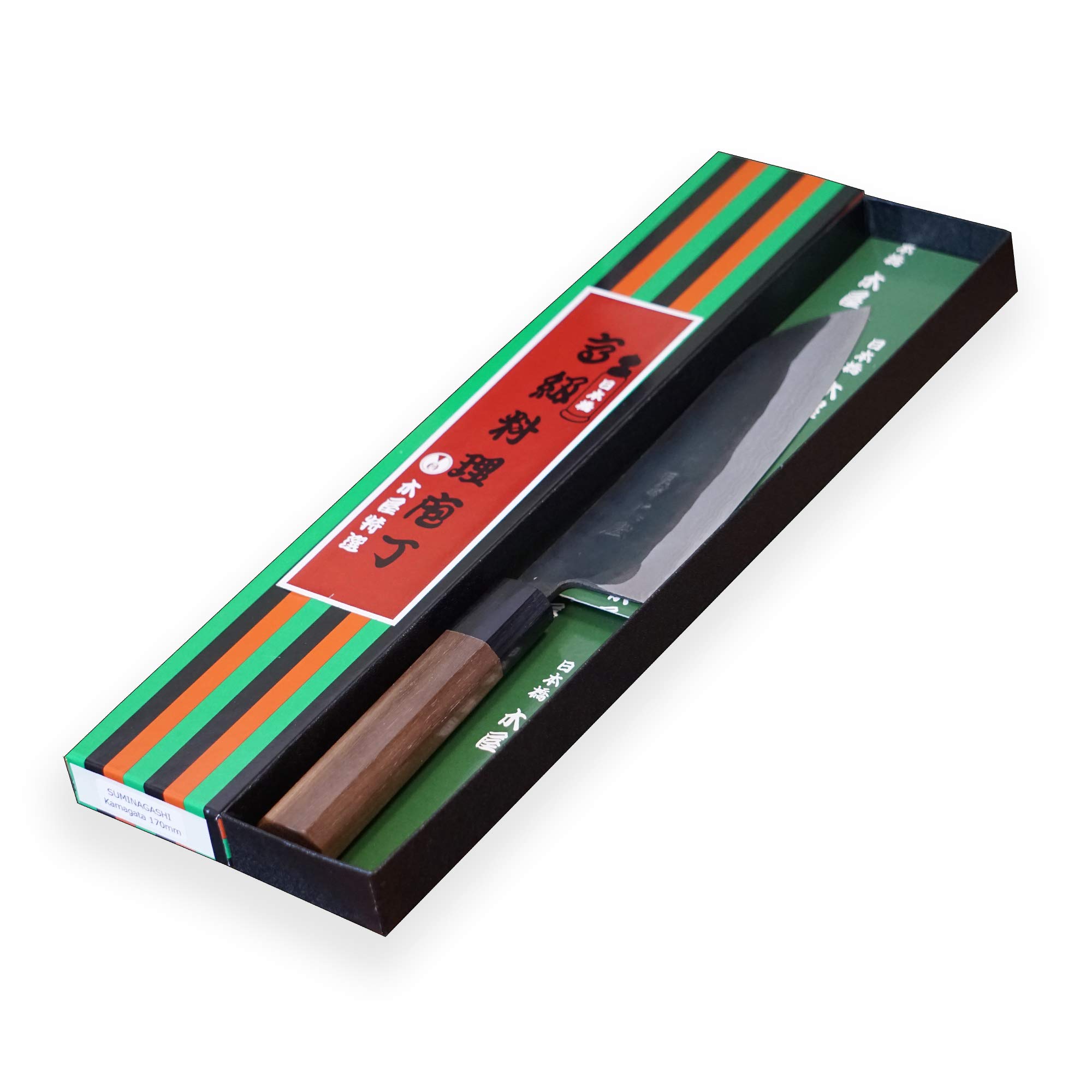 La poignée octogonale est fabriquée en bois de santal. Chaque couteau de chef KIYA possède son propre caractère grâce à son traitement individuel. Suminagashi (Damasco) El cuchillo Kamagata KIYA de 170 mm tiene un núcleo de corte ultra afilado del acero japonés de grado especial Takefu-V 2. Tiene una muy buena nitidez en los bordes y excelente retención Il devient ainsi une pièce unique – un chef-d'œuvre de tradition et d'artisanat. La lame est généralement plus courte que celle d'un couteau de cuisine et a une géométrie nettement différente. Cet acier n'est pas en acier inoxydable. KIYA Suminagashi Couteau de chef Kamagata/Santoku 11 couches 170 mm Kamagata 170 mm est un guerrier culinaire sans attention, prêt à répondre à tous vos besoins. Acier japonais de qualité supérieure – Acier japonais Takefu v2 super carbone – Acier au carbone de haute qualité, combine son aspect traditionnel élégant et sa fonction moderne puissante. Évitez à tout prix toute pliure, choc et mouvement de levier. Matériau de la lame : Shirogami #2 avec revêtement en acier au carbone Résistant à la rouille ... €299.00 TVA INC. Shirogami No. 2 Lame oxydée Lame à 11 couches... Avec son emballage de luxe, le couteau Gyuto/chef est également le choix intelligent comme cadeau. Couteaux De Chef KIYA Suminagashi Gyuto SXL3-128 Couteau De Cuisine Takefu V Grade 2 Steel-11 Couches D'acier Damas à Haute Teneur En Carbone Et Manche En Bois De Santal 8 Coins Lame 180 Mm Santoku Japonais L'acier peut atteindre une dureté allant jusqu'à 61 HRC sans se casser. Le mot japonais Santoku est traduit comme « trois vertus », ce qui témoigne de la polyvalence de ce type de couteau, qui se caractérise par une coupe unique. Rincez le couteau après utilisation, séchez-le avec un chiffon ou un torchon et rangez-le dans un endroit sûr., Fabriqué au Japon. L'affûtage de la lame garantit un écoulement minimal de liquide et vos plats seront juteux et riches en vitamines. Kai Tim Mälzer Kamagata couteau de chef hybrid | Achetez à prix