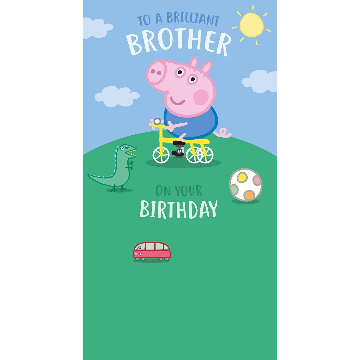 Produit sous licence officielle Peppa Pig , Enveloppe incluse , Qualité supérieure Danilo Promotions LTD Official Peppa Pig Brother Birthday Card, To A Wish your 'Brilliant Brother' a very Happy Birthday with this Official Peppa pig birthday card featuring Peppa's brother George riding his bike Peppa Pig - Mon petit frère (Grand format - Cartonné 2017), de