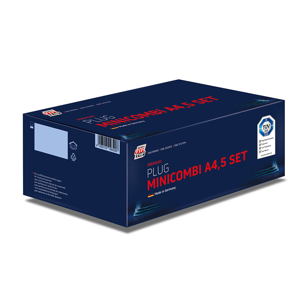 Le corps de réparation Minicombi vulcanise tout seul dans les pneus. En un seul passage, l'intérieur du pneu et le canal perforé sont réparés. Contenu de la livraison : 20 corps de réparation avec goupille rétractable métallique, 2 tubes de ciment spécial BL de 25 g, 1 fraise HSS Ø 8 mm, convient pour camion VPE : 1 assortiment Supplément de CHF 10.-, si inférieur à la valeur minimale de commande. Livraison sous 1-3 jours ouvrables. Wagenheber Compac inkl. Zubehör Aazon.co: Rea Tip Top A-6-R inicobi Tire Repair Kit - 8 A-6 Repair... Rema Tip Top Minicombi B8 PREMIUM Line Kit De Recharge 20 Pi Ces Aazon.co: Rea Tip Top A-4.5 inicobi Tire Repair Units with Wire