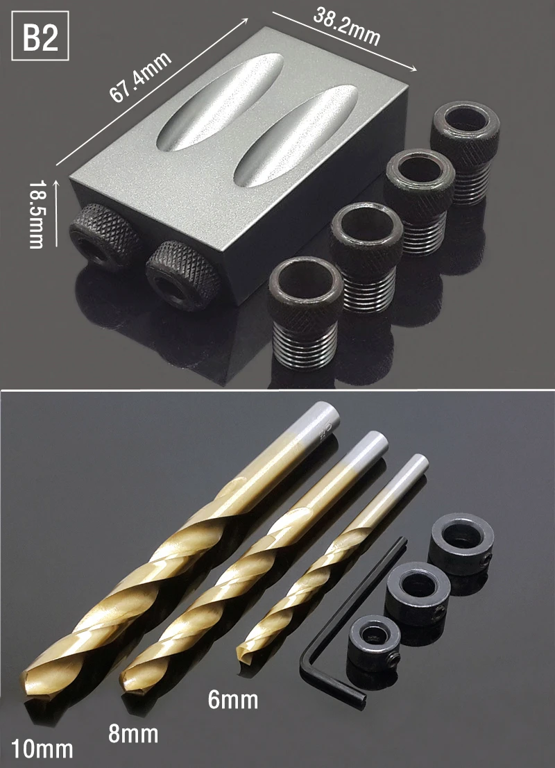 Spécification : Type d'article : gabarit de goujon Matériau : plastique ABS Taille du foret : 6 mm 8 mm 10 mm Taille du gabarit de goujon: 200 x 72 x 86 mm/7,87 x 2,83 x 3,39 pouces Liste des colis : 1 x gabarit de goujon1 x clé3 x positionneur3 x foret La position du déflecteur peut être ajustée selon les besoins et la plage de réglage est de 0 à 50 mm. L'outil peut grandement améliorer votre efficacité de travail. Le kit de chevilles à centrage automatique -Jig -Woodworking -Jig -Kit est conçu pour les forets de 6 mm, 8 mm et 10 mm et offre une polyvalence lors du changement différentes tailles de chevilles en bois VBESTLIFE Gabarit de goujonnage pour le travail du bois Gabarit de... Gabarit De Goujon Sonew Kit De Menuiserie Pour Perceuse à Goujon Kit De Gabarit De Trou Gabarit Pour Goujon OUTIL AUXILIAIRE DE perceuse électrique gabarit goujon pour 8 18 mm