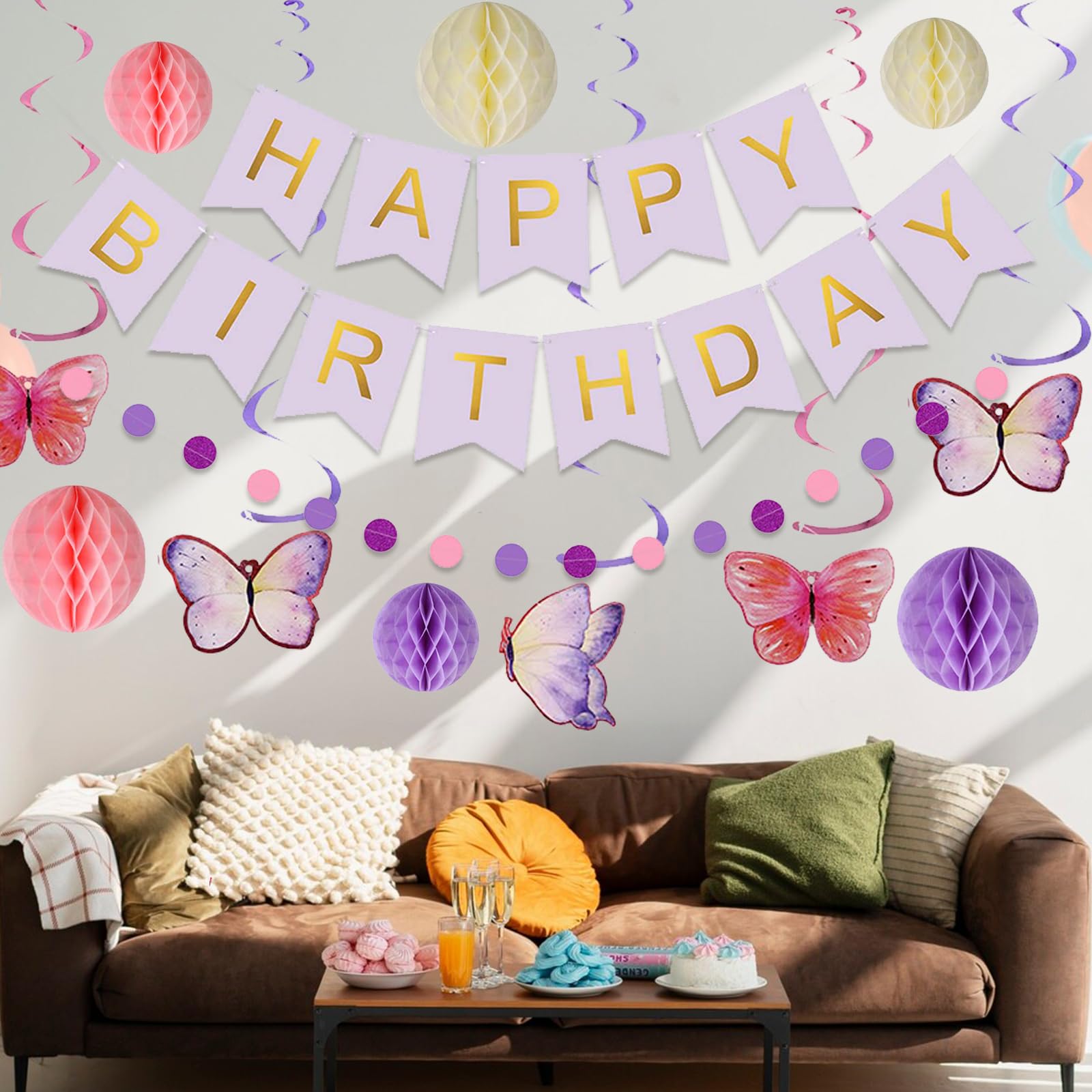 Décorations de fête papillon violet : vous recevrez 1 bannière « Happy Birthday », 12 ballons en latex imprimé papillon, 1 ballon en aluminium papillon, 2 boules en nid d'abeille roses, 2 boules violettes en nid d'abeille, 2 pompons en papier de 20,3 cm, 12 décorations de cupcakes, 1 décoration de gâteau et 6 tourbillons suspendus. Remarque : les ballons peuvent être remplis d'hélium ou d'air. Facile à assembler : les ballons de fête papillon sont parfaits pour les décorations d'anniversaire d'une fille. Décoration Anniversaire Dpd Tyxzle Fournitures De Fête à Suspendre Avec Papillons Violets - Bannière « Happy Birthday » - Nappe Sur Le Thème Des Papillons Pour Décorations De Fête D' Anniversaire Idée Décoration Anniversaire Fille Téléchargez ce vecteur Premium sur Cercle de papillon monarque volant réaliste rose sur fond blanc bannière de joyeux anniversaire ronde et explorez des millions de vecteurs professionnels sur Freepik. Contenu : 1 bannière violette « Happy Birthday ». 1 guirlande à pois cercle. 6 spirales à suspendre. 6 cartes papillon. Créez des souvenirs inoubliables : créez... Décorations d'anniversaire papillon : vous voulez offrir à votre petite fille une fête d'anniversaire unique ? Cette décoration d'anniversaire papillon répondra à vos besoins, ballons colorés et papillons, rendra la fête d'anniversaire pleine d'une atmosphère de rêve, ce qui apporte des surprises aux filles. Utilisez votre créativité pour créer une scène de fête papillon de rêve. Matériaux fiables : nous vous fournissons des ballons en latex naturel de haute qualité. Papier cartonné robuste pour bannières papillon et décoration de gâteau, durable à utiliser, léger à transporter Faites attention à la chaleur, aux objets tranchants et aux frottements excessifs. Vous pouvez accrocher des bannières et des ballons sur les murs, les portes, les balcons et les fenêtres pour décorer votre fête. Bannière De Noël Avec Des Boules | Vecteur Gratuite