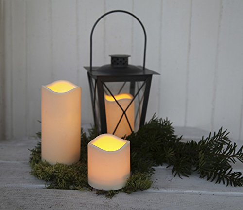 Créez une lumière d'ambiance sur votre terrasse ou votre balcon et appréciez le scintillement réaliste de la lumière des bougies. This white plastic coated LED candle fits easily into your outdoor decoration. Create a mood light on your patio or balcony and enjoy the realistic flickering of candle light Placez l'interrupteur situé en bas sur Timer à l'heure de votre choix et chaque jour à la même heure, la bougie s'allumera pendant 6 heures. LED Außenkerze | 7,5cm, 3 Höhen | Timer | Weiß/elfenbein Détails techniques : - Matériau : plastique - Convient pour une utilisation en extérieur - Couleur : blanc - Couleur de la lumière : ambre - Hauteur : environ 15cm - Diamètre : environ 7,5 cm - Éclairage : 1x LED - imite une flamme naturelle (effet de scintillement) - Alimentation : 3x AAA (non inclus) - Interrupteur avec 3 fonctions au bas de la bougie : ON - OFF - TIMER - Fonction minuterie : 6 heures de marche, 18 heures d'arrêt (automatique) - toutes les données selon le fabricant Luca Lighting Kerze Grün 15 cm x 7,5 cm LED mit Timer Warm Weiß kaufen... Deluxe Homeart LED-Kerze MIA Deluxe für Außen flackernd H: 15cm D: 7 Avec cette bougie à piles, vous n'avez pas à vous soucier des risques d'incendie, de la chaleur, de la suie, de la fumée et de la cire chaude qui coule. Grâce à la fonction de minuterie, vous n'avez plus à vous soucier d'allumer et d'éteindre la bougie LED.