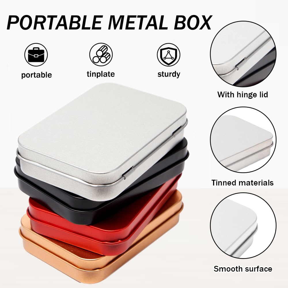 Nom du produit: Mini boîte en métal de rangement vide à charnière Quantité: 8 pcs Matériaux: fer blanc Couleur: Or, Argent, Noir, Rouge -Le matériau métallique est durable et résistant au vieillissement, ce qui peut protéger vos objets de valeur de l’humidité et de la lumière du soleil -Boîte Vide en Étain peut être facilement fermé et facile à transporter, ce qui le rend idéal pour trier et stocker de petits objets à la maison, dans le garage ou au bureau -Nous proposons Boîtes Rectangulaires Vides en Métal dans une variété de couleurs, vous n’avez donc plus à ouvrir la boîte une par une pour trouver rapidement les petits articles que vous organisez Remarques: 1., En raison de la différence d’affichage, il peut y avoir une légère différence de couleur dans le produit, veuillez comprendre Quantité et taille : contient 8 pièces de Boîtes vides en métal avec couvercles, la taille est de 8,8x6x2 cm, 2 pièces d’or, d’argent, de noir, 2 pièces de rouge, de petites boîtes en métal de différentes couleurs sont pratiques pour vous permettre de distinguer et de stocker différents types de petits objets Matériau fiable : Petite boîte en métal rectangulaire est fabriqué en fer blanc de haute qualité, anti-corrosion et résistant à l’usure, peinture pas facile à écailler, la surface de la peinture mate montre une texture de haute qualité, un matériau solide, adapté à une utilisation à long terme BOÎTE À BONBONS en fer blanc pour biscuits de noël, boîte-cadeau vide... xutong Lot de 5 Boîtes Rectangulaires Vides en étal Argenté à... Mini Bac Pill Storage Box,Type C--Mini Boîte En Métal À Charnière Vide Avec Couvercle, Petit Conteneur De Mini Tin Boîte plastique rectangulaire transparente 3-compartiments avec