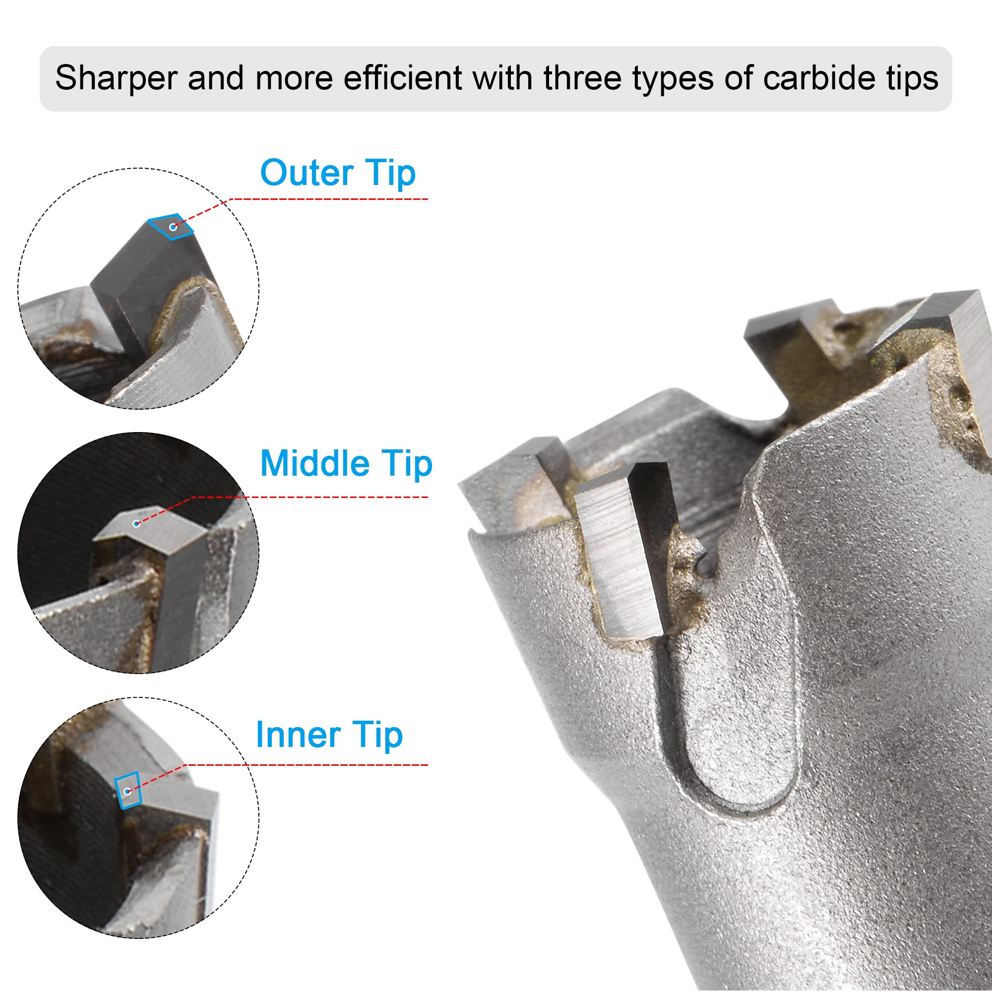 La perceuse centrale joue un rôle de positionnement. Application : peut être utilisé sur perceuse manuelle, perceuse à banc, perceuse magnétique, perceuse pneumatique et autres machines rotatives. Appliquez de l'huile antirouille pour une plus longue durée de vie après utilisation. Ne peut pas être utilisé sur les perceuses à percussion et les perceuses à percussion électriques. Design à dents combinées à trois tranchants, coupe des composants en couches, faible résistance à la coupe, vitesse de perçage rapide Peut être utilisé sur des perceuses manuelles, des perceuses d'établi, des perceuses magnétiques, des perceuses pneumatiques et d'autres machines rotatives. Pas besoin d'acheter des accessoires supplémentaires pour les travaux de perçage. Scie Cloche Tungstène Inox Sourcing Map Coupe-trou En Carbure De Tungstène De 17 Mm, Scie Scie Cloche Carbure Inox La conception du foret pilote étagé protège les dents en carbure contre les chocs parfaits lorsque le foret pilote coupe à travers le matériau de coupe. Peut faire des coupes lisses dans des matériaux tels que l'acier inoxydable, l'acier allié, l'aluminium, le plastique, le FRP et le PVC. Percez n'importe o que vous utilisiez une perceuse d' tabli ou une perceuse air comprim sur site, nos accessoires offrent des performances constantes. Afin d'éviter l'écaillage, veuillez éviter que le bord de l'ouvre-trou ait un impact violent lors de la coupe des matériaux. Foret de Scie Cloche en Métal - Coupe Carbure de Tungstène, Diamètre Description du produit Informations sur le produit : Largement utilisé pour percer des trous sur la plaque métallique dans la cuisine, la structure de porte, l'armoire d'équipement et la boîte de câbles. Engrenage de meulage d'angle en forme de T La partie dentée est fabriquée en alliage d'acier au carbure de tungstène à haute teneur en acier trempé jusqu'à HRC64-65, longue durée de vie. Veuillez ajouter du liquide de refroidissement ou de l'eau lorsque vous travaillez sur des tôles métalliques en acier inoxydable et en acier de plus de 5 mm. Les emporte-pièces en carbure ont une durée de vie plus longue que les forets en métal normaux. Conseils : maintenez la perceuse uniformément à une vitesse faible ou pré-percer le trou central pour prolonger la durée de vie du foret. Convient pour tuyaux ronds ou carrés, tôles d'acier, plaques de fer. Tout en un : foret, ressort, clé incluse. Performance multi-mat riaux il peut tre utilis sur l'acier, le fer, l'aluminium, le cuivre et le plastique, ce qui est un outil indispensable pour les lectriciens, les orf vres et les amateurs de bricolage. Sourcing Map Coupe-trou En Carbure De Tungstène De 40 Mm, Scie-cloche Pour Tôle D'acier Inoxydable, Tige Triangulaire Antidérapante, Avec Foret Central Revêtu... Remarque importante : Avec une perceuse centrale de positionnement, l'ouvre-trou doit être installé manuellement et serré avant utilisation. Perçage précis pour les boîtes électriques pour assembler en douceur les boutons, les interrupteurs et les écrans.