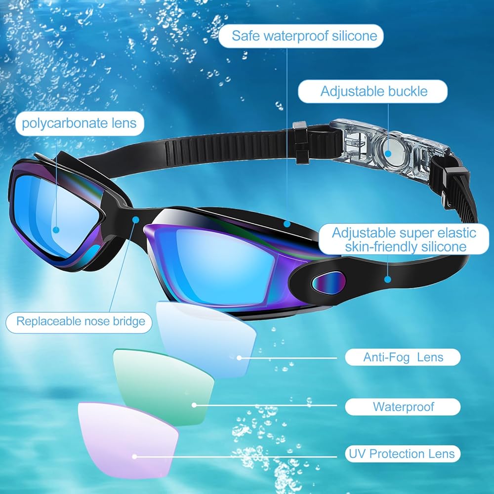 Idées cadeaux utilitaires : Ces lunettes de piscine pour enfants peuvent être envoyées en cadeau à vos enfants, ou aux enfants de vos amis, collègues, voisins ou famille, ce qui leur permet de ressentir votre attention sincère, votre amour et votre attention. Lunettes de Natation pour Enfants avec Bouchons d'oreilles Siamois, Antibuée, Fuite Protection, Joints en Silicone, Vision à 180 degrés avec étui, pour Enfants Garçons Jeunes (4-14 ans), Bleu Marin Caractéristiques : Matériau : Lentille : polycarbonate. Cadre et sangle : silicone. Couleur : noir et blanc, noir, bleu et blanc, noir et jaune, noir et jaune... Design sans fuite : ce type de lunettes de sport pour enfants est bien et soigneusement conçu, les lunettes sont positionnées autour des yeux pour répartir uniformément la pression, s'adaptent bien au visage et gardent l'eau hors des yeux, permettant à votre enfant de mieux profiter de l'expérience de natation La couleur peut varier légèrement en raison des différents affichages de l'écran. 12 ensembles de pince-nez et bouchons d'oreille. Les mesures étant prises à la main, les tailles indiquées peuvent varier légèrement. Facile à porter : les lunettes pour enfants avec sangles sont faciles à ajuster à la forme et à la taille de votre tête, ne vous inquiétez pas si votre enfant ne les porte pas. Remarques : Veuillez consulter les informations relatives aux tailles avant de commander. Contenu de l'emballage : vous recevrez 12 lunettes de natation pour enfants en 6 styles de couleurs différentes, avec pince-nez et bouchons d'oreille, 2 pièces pour chaque style ; une variété de couleurs et de quantités pour répondre à vos différents besoins, et vous pouvez les partager avec les enfants de votre famille ou de vos amis Nos lunettes de natation sont conçues dans le but d'offrir un confort et les meilleures sensations lors de la pratique de la natation. Dans sa fabrication, nous utilisons uniquement les meilleurs matériaux : verres haute résistance et montures en silicone liquide pour garantir le meilleur ajustement, la plus grande durabilité et la plus... Lunette De Piscine Lunettes De Natation Enfants - Anti-buée, Protection UV - Avec Pince-nez Et Bouchons D'oreilles - 3-12 Ans Lunette Piscine Enfant Les boutons latéraux bien conçus, vous permettent de mettre et de retirer facilement les lunettes en quelques secondes sans les emmêler dans vos cheveux
