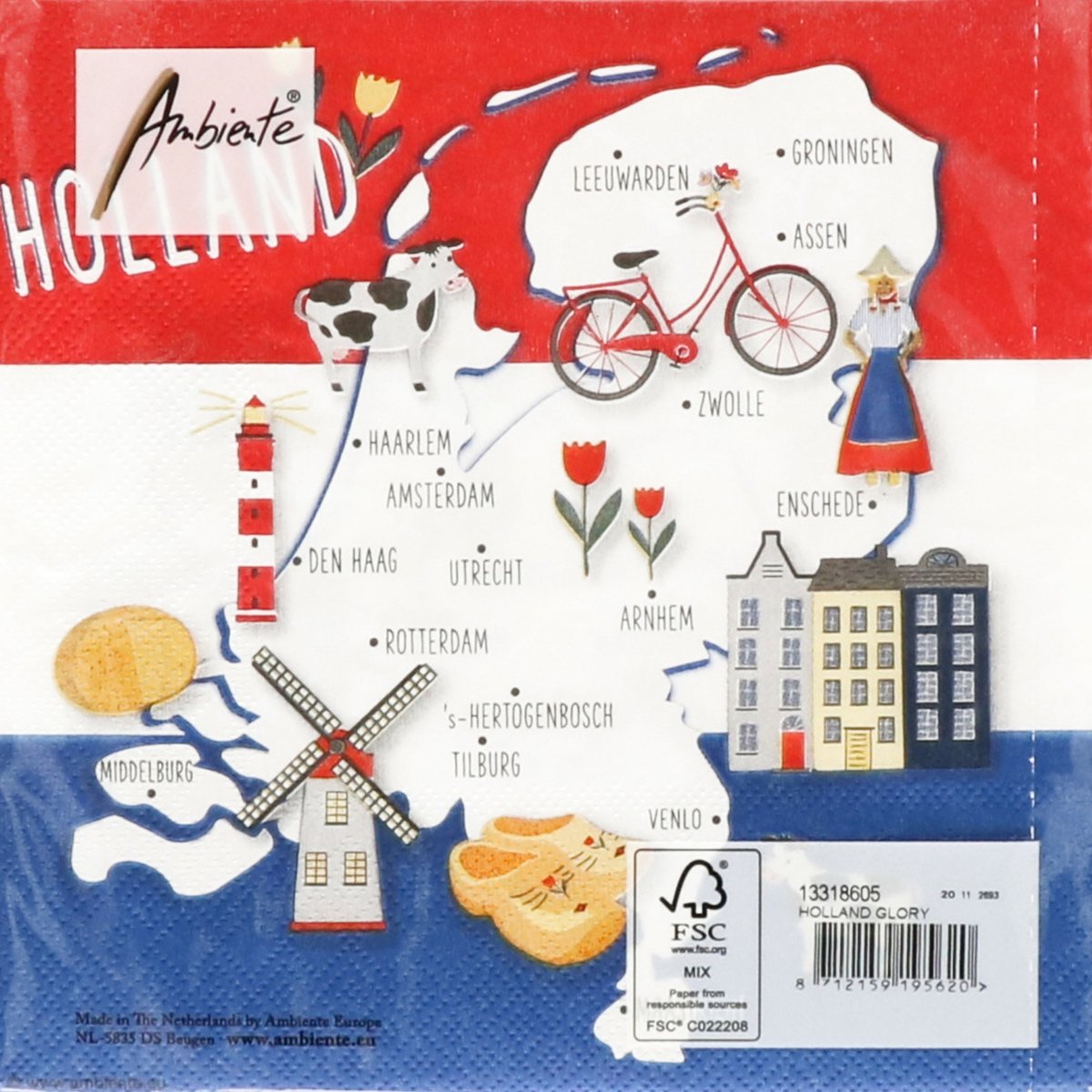 - Motif : Hollande - 33 x 33 cm, 20 serviettes en papier , Motif : Hollande , 33 x 33 cm 1000 Mini-serviettes couleur bleu marine 20 cm 20 serviettes au format lunch | Motif : cœur avec oiseau | Texte : I ♥ Holland | Bon prix. Livraison rapide. Commandez maintenant Carton De 12 Paquets De 20 Serviettes En Papier Lunch 33x33 Cm PARIS Serviettes de table sur le thème des Nederland et de la Holland . Contenu: 20x pièces. Serviettes à 3 épaisseurs en papier de soie blanchi 100 % FSC, sans...
