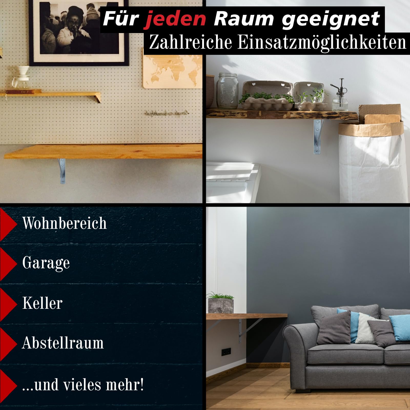 L'étagère charges lourdes en métal 8 plateaux avec vestiaire d'une hauteur de 180cm est conçue pour répondre aux besoins de stockage les plus exigeants. Avec sa structure en acier galvanisé et sa capacité à supporter des charges lourdes, cette étagère offre une solution de rangement fiable et pratique pour divers environnements, que ce soit dans un garage, un entrepôt ou même une... 8 supports - 200 x 250 mm - Galvanisé - Charge maximale : environ 150 kg par support - Pour une répartition uniforme de la charge - Pour une étagère, 2 supports nécessaires. La barre transversale est soudée des deux côtés et stabilise la console. Etagère charges lourdes 5 plateaux - L90 x P40 x H180 cm - 175 kg / plateau - Bricolage Étagères Pour Charges Lourdes - Comparez Les Et Achetez Sur Matériau : acier doux S235JR de 30 x 4 mm - Barres transversales : 20 x 4 mm - Massif. Galvanisation résistante - Livré sans étagère. Finitions de qualité - Trous décalés pour faciliter le vissage. Charge maximale : environ 300 kg/paire de supports (donc 150 kg/poutre), avec une répartition uniforme de la charge. Les coins extérieurs sont arrondis et minimisent ainsi le risque de blessure. Supports pour charges lourdes INDEX - 428 x 428 x 6 (550) mm... Fabrication soignée et matériau solide.