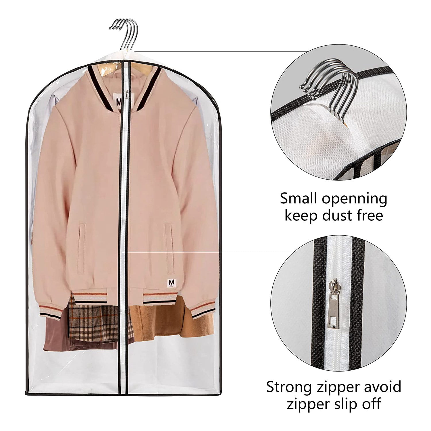 - Dimensions : 107 x 60 cm (sans les poignées). Ils sont également parfaits pour les occasions spéciales telles que les mariages et les remises de diplômes, vous permettant de transporter vos vêtements en toute sécurité Détails du produit : notre produit comprend 2 sacs à vêtements roses, chaque sac de costume court mesure 107 x 60 cm. Chaque sac à vêtements peut contenir 2 costumes ou 5 t-shirts, ce sac de costume de 106,7 cm est adapté à la plupart de vos vêtements quotidiens, y compris les costumes, robes, chemises, pulls, vestes, etc, Matériaux respirants : ces sacs à vêtements pour accrocher... Nous avons également élargi les côtés de 8,1 cm pour plus d'espace de rangement. Le sac de costume peut être plié à plat pour un rangement facile, économisant de l'espace dans votre placard ou vos bagages - Convient pour les costumes, vestes, pulls, vestes en cuir. Matériaux respirants : ces sacs à vêtements pour accrocher des vêtements sont fabriqués en matériau non tissé respirant et résistant. Idéal pour les voyages et le rangement : ce sac de costume dispose de poignées de transport durables et d'un pliage facile pendant le voyage. Contenu de l'emballage : 4 sacs à vêtements blancs de 106,7 cm., Remarque : 1., Les mesures étant prises à la main, les tailles indiquées peuvent varier de 0 à 1 cm., 2., La couleur de l'article peut varier de celle de la photo, en fonction des paramètres d'affichage et de luminosité de votre ordinateur. Design intelligent : ce sac de costume dispose d'un design visuel unique, ajoutant une fenêtre transparente sur les sacs à vêtements, ce qui vous permet de trouver et de trier vos vêtements sans les ouvrir. Lot de 6 sacs de rangement sous vide réutilisables avec cintres comprend 3 pi JCBZAMZ Lot De 2 Sacs à Vêtements Blancs De 106,7 Cm Pour Suspendre Des La fermeture éclair améliorée de ce sac n'est pas facile à casser ou à endommager, glisse facilement comme la soie et est solide et robuste.