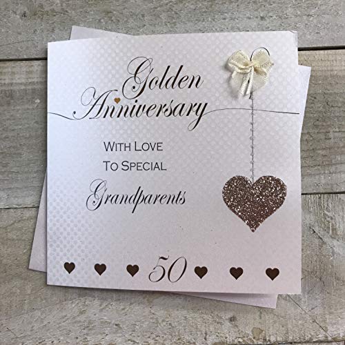 Finition à la main avec paillettes étincelantes., Enveloppe incluse., 16 x 16 cm. L'intérieur de la carte est vierge pour y inscrire votre message personnalisé. Finition à la main avec paillettes étincelantes et strass. Wedding Anniversary... Joyeux 50ème Anniversaire - Livre d'Or Nous répondons à toutes les occasions et concevons constamment de nouvelles gammes pour vous aider à revenir., Enveloppe incluse., Dimensions : 16 x 16 cm. Quel Cadeau Offrir Pour Un Anniversaire De Mariage 50 Ans Une superbe carte anniversaire, décorée à la main avec des paillettes et des pierres précieuses scintillantes, sur une planche chatoyante dotty de White Cotton Cards Ltd. Enveloppe incluse White Cotton Cards est une société de cartes et de cadeaux primée. Les paillettes et les pierres précieuses sont appliquées individuellement pour que chaque produit que vous achetez chez nous soit vraiment unique et tout comme vous, ce morceau supplémentaire spécial.