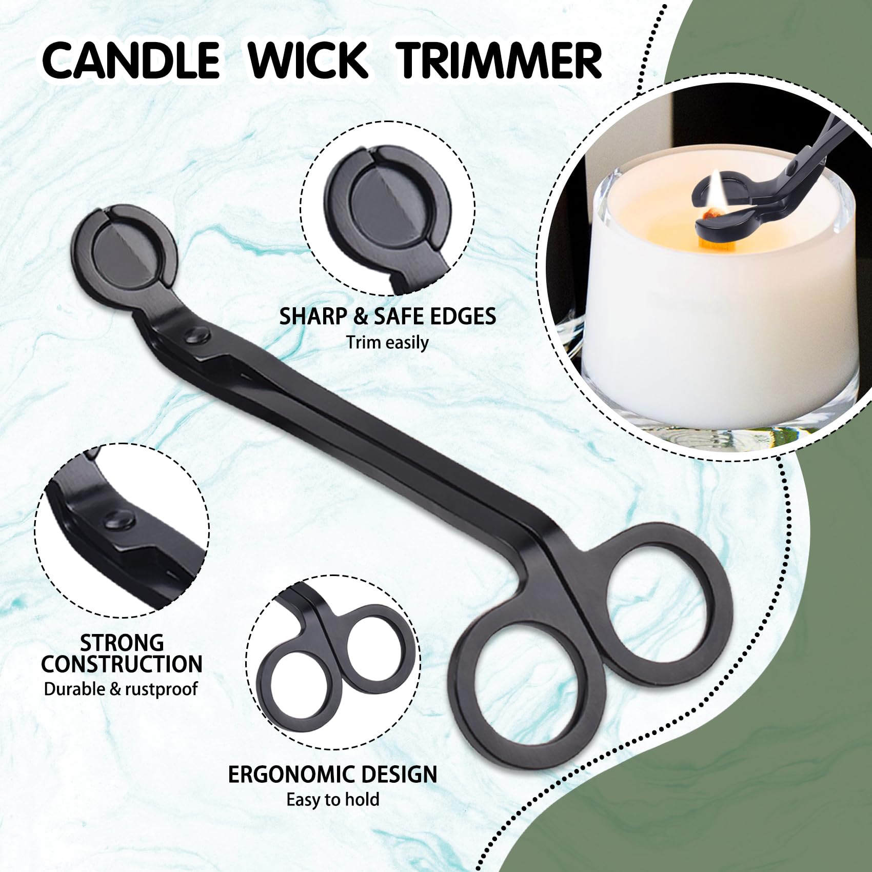 Ensemble D'accessoires De Bougie Dessinés à La Main Doodle Coupe-mèche... Description du produit Oumefar Coupe Meche Bougie Bougie mèche Tondeuse Bougie mèche Tondeuse Bougie éteignoir Bougie Coeur Clip Bougie Pince Ciseaux Outil pour l'église de cérémonie de Mariage(Or Rose) Home Nous ferons de notre mieux pour vous fournir le meilleur service et vous faire vivre une expérience de magasinage heureuse Conception sûre:Avec la conception de la bouche en ciseaux, la tondeuse à mèche en acier inoxydable est facile à couper et sûre pour protéger votre main, Caractéristiques: 1., Fabriqué en acier inoxydable, à utiliser et longue durée de vie., 2., Adoptez le processus de placage, pas facile à rouiller., 3., Il est pratique à utiliser et vous ne serez pas blessé lors de l'utilisation., 4., Un outil essentiel pour la vie laitière., 5., Disponible en quatre couleurs pour votre choix. Coupe-mèche – Accessoire bougie élégant et pratique – Ma boutique Aromatique Eteignoir Bougie Oumefar Bougie Mèche Tondeuse Bougie Mèche Tondeuse Bougie éteignoir Mèche Bougie Coupe Meche Bougie: La tondeuse à mèche de bougie peut empêcher la suie et prolonger le temps de combustion des bougies, cette tondeuse à mèche améliorera la combustion de votre bougie Nous ferons de notre mieux pour vous fournir le meilleur service et vous faire vivre une expérience de magasinage heureuse Conception sûre:Avec la conception de la bouche en ciseaux, la tondeuse à mèche en acier inoxydable est facile à couper et sûre pour protéger votre main Veuillez prendre le vrai comme standard. Spécification: Condition: tout neuf matériel: acier inoxydable Couleur facultative: noir, ruban, or, or rose Poids: env. Star-Bougie Mèche Cutter Tondeuse Bougie Éteignoir et Louche acier... Coupe Meche Bougie: La tondeuse à mèche de bougie peut empêcher la suie et prolonger le temps de combustion des bougies, cette tondeuse à mèche améliorera la combustion de votre bougie Excellent service:Si vous avez des questions, veuillez .
