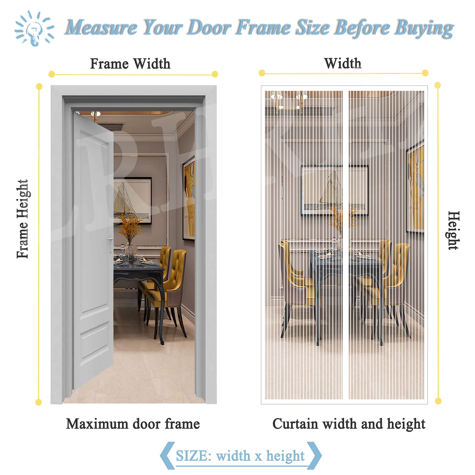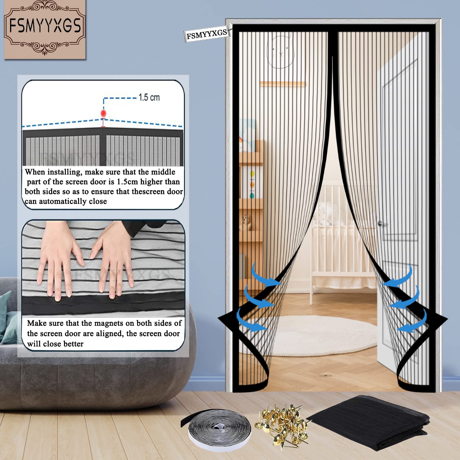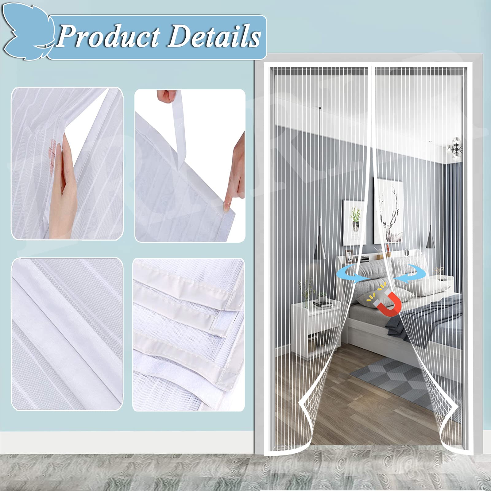 Le est facile à enlever et ne laisse aucune trace ou dommage au cadre de la porte. CONCEPTION COUPE-VENT La porte moustiquaire magnétique ajoute une tige de gravité coupe-vent à la fois dans le bas du rideau de porte et l'empêche d'être emportée par des vents forts. Évitez l'entrée d'insectes, de moustiques, de mouches et d'abeilles., La maille 4., Breathable maintient l'air frais circulant. Moustiquaire Porte Magnétique, Rideau en Maille avec Aimants, Fermeture... La maille fine de la porte moustiquaire peut protéger efficacement les insectes et assurer une bonne circulation de l'air. Description du produit La Porte Moustiquaire Magnétique LRHRHR bloque les mouches, les abeilles, les moustiques et garde l'intérieur frais lors des chaudes journées d'été. FERMETURE AUTOMATIQUE La couture centrale de la porte moustiquaire est stratégiquement doublée de bandes magnétiques, une forte force magnétique permet de sceller de manière transparente la moustiquaire, se fermant automatiquement. ☀☀【MATÉRIAU DE HAUTE QUALITÉ】:Notre LRHRHR moustiquaire porte est fait de tissu de fil de nylon robuste, de la maille fine avec une bonne transmission de la lumière et une bonne perméabilité à l'air, durable et résistant à l'usure, peut être utilisé pendant plusieurs années. Risareyi Moustiquaire magnétique en fibre de verre pour porte Installation rapide et facile avec le ruban adhésif (inclus) qui peut être facilement fixé ou retiré cadre de la porte. Magnétisme fort La fermeture automatique vous permet de libérer vos mains. SCÉNARIOS D'UTILISATION être utilisé dans la porte extérieure de la maison, la porte du balcon, la chambre à coucher, la cuisine, la chambre d'enfants, le salon, etc. Peut être réutilisé. Moustiquaire Porte Magnétique, Auto-Adhésif Rideau En Maille, Fermeture Automatique, Sans Perçage, Pour Couloirs Patio Portes-White-B| 110x205cm(43x80inch Moustiquaire Porte Fenetre ☀☀【LAISSE ENTRER L’AIR FRAIS ET LA LUMIÈRE】:Moustiquaire aimantée est perméable au gaz et transparente, maille ultra fine offrent une protection optimale contre les insectes et n'affectent pas la circulation de la lumière ou de l'air. confortable et agréable pour l’été. Aimants puissants qui permettent à la porte de s'ouvrir facilement et de se fermerture Automatique. La taille de la porte moustiquaire est la largeur x la hauteur. Il peut être fermé automatiquement lors de l'entrée ou de la sortie. Les enfants et les animaux domestiques peuvent également passer facilement par le réseau. PRODUKT DETAILS CONCEPTION EN MAILLE FINE Cousu à la main, durable et respirant. Facile à installer sans outils supplémentaires. ☀☀【USAGES MULTIPLES】:Nos LRHRHR portes moustiquaires magnétiques sont disponibles dans différents styles, couleurs et plusieurs tailles pour votre choix.