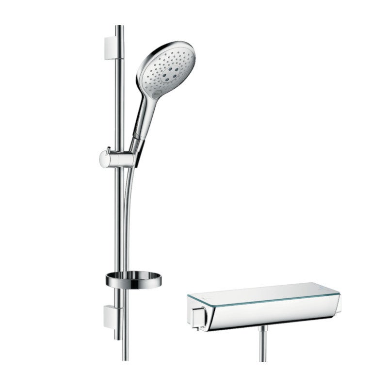 Garantie totale de 5 ans par le fabricant. Hansgrohe, le choix de la qualité allemande, l'innovation et le design depuis 1901., Mitigeur thermostatique ultra-précis: température stable au degré près, 1 butée de confort à 40° 1 flexible de douche Isiflex 1,60m (#28276000) Le flexible de douche Isiflex en PVC renforcé mesure 1,60m. Kit de douche 150 3 jets 90 raindance select s hansgrohe en ance Barre de douche robuste de 65cm de hauteur et de 2,2cm de diamètre avec porte-douchette et porte-savon Picots anticalcaires: le calcaire s'élimine d'un simple passage du doigt pour des jets irréprochables et pour longtemps. Compatible avec tous types de production d'eau chaude. Installation facile. Garantie totale de 5 ans par le fabricant Le robinet dispose d'un système d'arrêt immédiat en cas de coupure d'eau froide (sécurité anti-brûlure). Pour éviter les brûlures, une butée de confort à 40°C empêche la sélection de températures trop élevées. Barre de douche robuste de 65cm de hauteur et de 2,2cm de diamètre avec porte-douchette et porte-savon 1 mitigeur thermostatique Ecostat Select (#13161000) Le réglage de la température est à la fois précis et stable au degré près : aucune variation n'est ressentie, grâce à la cartouche thermostatique ultra-réactive, brevetée par Hansgrohe. Grâce à ses écrous tournants en métal, le tuyau ne se tord pas, ne s'entortille pas, le jet reste donc constant pendant l'utilisation. Changez de jet grâce au bouton Select facilement accessible et 100% mécanique. Poire De Douche Robinet De Douche Hansgrohe Ensemble Douche Raindance Select S 150 3 Jets Mitigeur Hansgrohe Pommeau De Douche Le finition de la tablette vitrée offre une élégance supplémentaire dans votre salle de bain et un espace pour vos accessoires de douche. HANSGROHE Combi douche S 150 3jet avec barre 65 cm Ecostat Select blanc... Barre de douche Unica S Puro tube profilé : rond longueur 669 mm pas de montage 625 mm diamètre de la barre de douche : 22 mm installation : par perçage Tuyau de douche Isiflex longueur : 160 cm tuyau de douche de haute qualité avec surface en plastique pivot tournant côté douchette évitant la torsion du flexible filetage de raccordement : G 1⁄2 mère conique aux deux extrémités Titulaire curseur en forme de cylindre réduit pouvant tourner dans toutes les directions curseur avec mécanisme de verrouillage support de douchette en métal Débit : 16l/min sous 3 bars de pression. Flexible de douche 1m60 en PVC renforcé et avec écrous tournants qui évitent la torsion du flexible 1 douchette Raindance Select S 150 3 jets (#28587000) 3 jets: jet RainAir, jet CaresseAir et jet Mix, répartis sur les 15cm de diamètre du pommeau, pour des jets larges et confortables. De plus, d'un simple geste vous économisez jusqu'à 50% d'eau et d'énergie, grâce à la position Eco qui réduit le débit à 10l/min, mais conserve la pression. Le curseur de douchette est ajustable en hauteur et dispose d’un angle d’inclinaison de 90° afin de régler l'orientation du jet de la douchette.