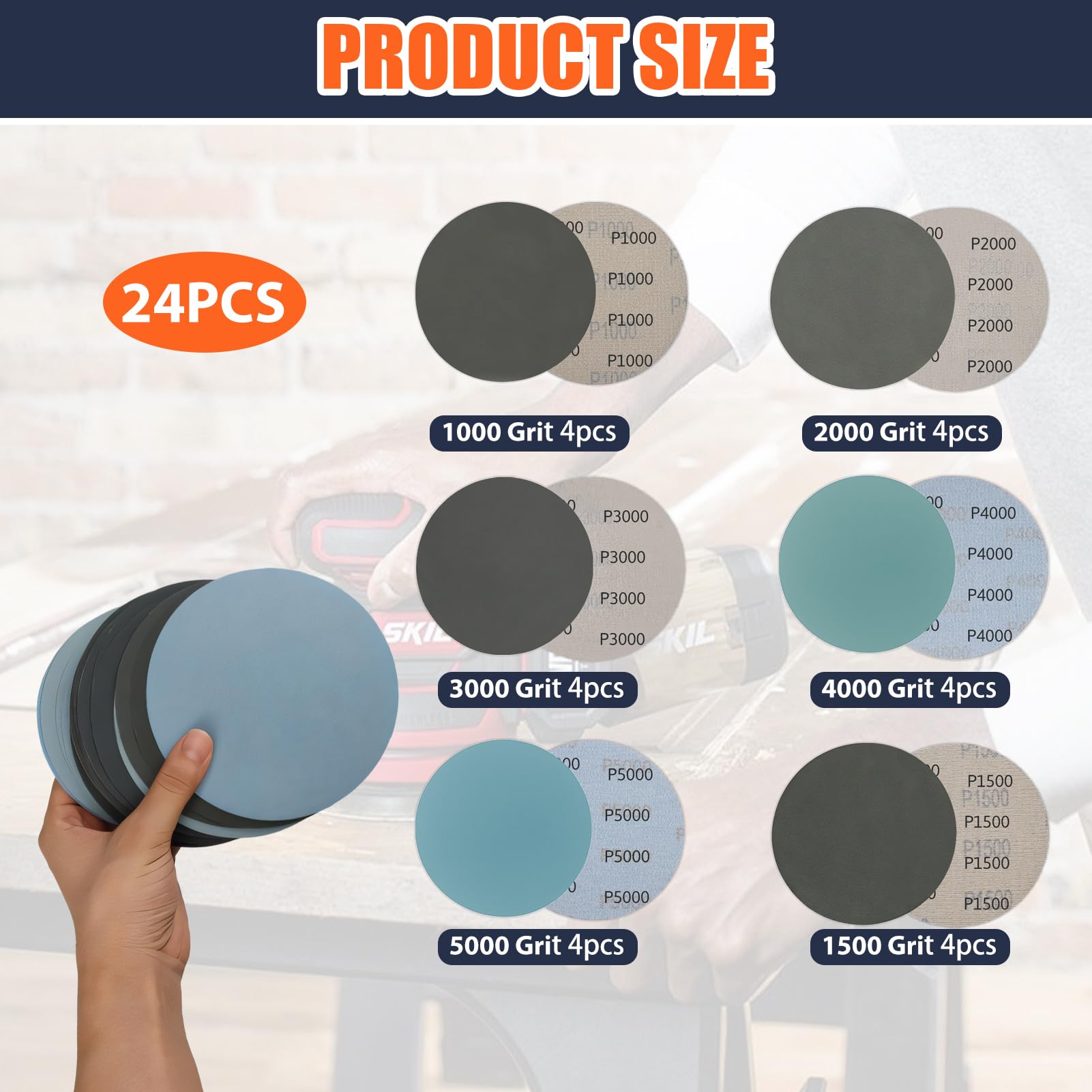 Supecesorio Papier a Poncer Carrosserie, 24 Pièces Disque Abrasif 125mm, Papier de Verre Polissage 1000/1500/2000/3000/4000/5000, Abrasif Auto Rond Grain, Disque Ponceuse Sec à l'eau pour Métal Bois 【Crochet et boucle arrière】 Le diamètre du patin de disque ponceuse 125mm, convient à la plupart des outils rotatifs, tels que meuleuses à matrice, meuleuses pneumatiques, perceuses électriques, etc agence éponge Comme polissage la chaux de fonds alignement Mercredi Le respect Sur , trouvez le papier abrasif idéal pour le ponçage des peintures de finition et vernis! Livraison ou retrait en moins de 2H dans un de nos centres Peut également prolonger la durée de vie du patin de ponçage. Papier Abrasif Pour Carrosserie Papier A Poncer Carrosserie, 24 Pièces Disque Abrasif 125mm Papier Pour Ponçage Carrosserie 【Matériau】Fabriqué en carbure de silicium et papier latex de qualité, chaque disque abrasif 125mm garantit une résistance à l'abrasion accrue de 30 %, antistatique et adapté aux applications humides et sèches. 【Facile à utiliser】 Cette meule sèche humide peut être utilisée pour le polissage à la main. Le grain uniforme, très peu de poussière, est un bon choix pour le meulage et le polissage. Le ponçage à l'eau peut minimiser les rayures, empêcher la poussière d'obstruer le papier abrasif Le dos premium avec 8 trous permet une aspiration efficace...