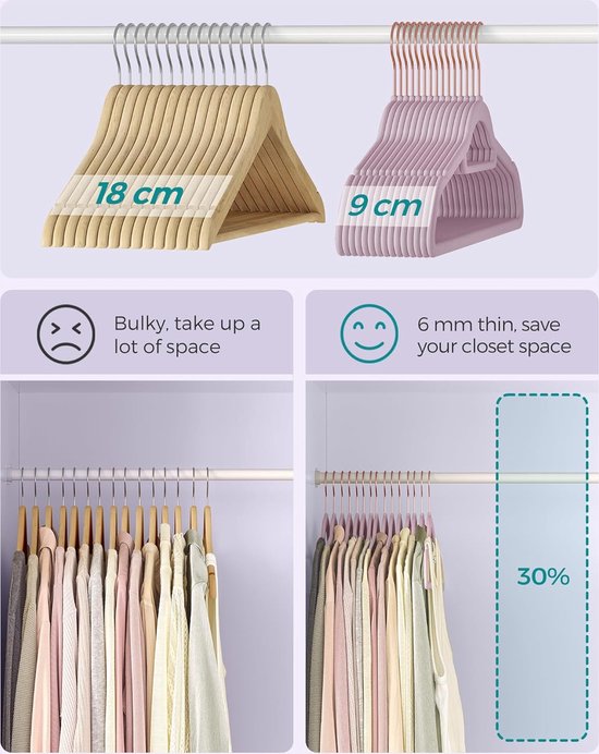 Utilisé à accrocher sur un portant à vêtements pour connecter le support suivant pour organiser vos t-shirts, chemises, manteaux, vestes, ceintures, cravates, écharpes et plus encore. Caractéristiques : Matériau : métal., Couleur : doré. Détails de la taille : chaque cintre en métal mesure environ 4 x 3 cm et environ 0,7 cm de diamètre, adapté à la plupart des cintres standard. SONGMICS Cintres en Velours, Lot de 50, Antiglisse, avec Encoches, Barre pour Pantalons, Crochet Pivotant à 360°, Gain de Place, Épaisseur 0,6 cm, Longueur de 43 cm, Gris Lot de 50 crochets en métal et velours pour cintres Pour différentes épaisseurs de cintres, organisateur et rangement pour placard. Les cintres sont incurvés pour vous aider à tenir des articles. Robuste et durable : nos crochets de suspension or rose sont fabriqués en métal de haute qualité, assurant durabilité et résistance à la déformation et à... Gain de place : l'extension de cintre en métal dispose d'un trou sur le dessus, et vous pouvez simplement les accrocher à travers les cintres. Le bord en silicone souple ne rayera pas vos vêtements et votre peau. Design soigné : chaque rallonge de cintre en métal est conçue avec un petit trou qui sera bien attaché au cintre. Convient pour différents cintres : crochets d'extension pour de nombreux cintres différents, tels que les cintres de costumes, les cintres de chemises, les cintres pour bébés et enfants, les cintres en plastique, les cintres en bois, les cintres en velours. Principaux points forts · Couleur. Rose Gold · Marque. Sankoly · Matériau. Plastique Métal Silicone · Dimensions de l'article L x l x H 30 x 42 x 25 millimètres Cintre Crochet En Solde Sankoly Lot De 50 Crochets En Métal Or Rose Pour Cintre, Gain Cintre Au Crochet Matériau métallique : les crochets de suspension sont fabriqués en métal de haute qualité, très robuste.