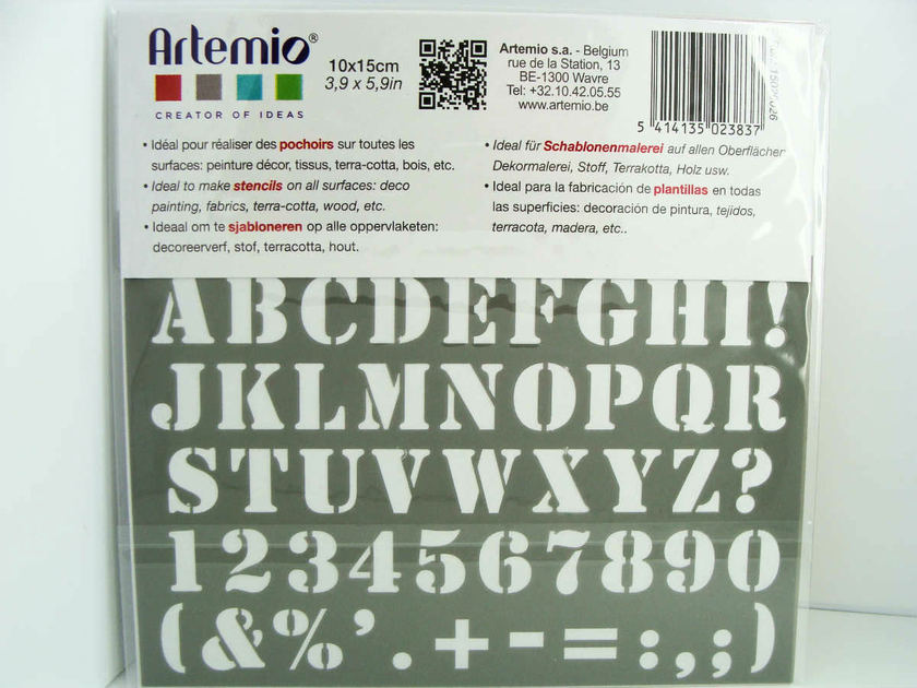 Plantillas Home Déco Stencils - Plastique Noir 155 X 02 X 195 Les enfants et les adultes peuvent facilement pratiquer la peinture avec pochoir pour les décorations d'intérieur ou d'extérieur: déco murale, frise, personnalisation de textiles, cadres, pages de scrapbooking., Tout est possible. Motif: lettres et nombres style Arial. Décorez et sublimez tous vos objets créatifs et supports à décorer avec l'alphabet noir pailleté d'Artemio. 300 formes en feutrine à coller, idéales pour orner vos pages de Scrapbooking, personnaliser... 70 Pochoirs 13x6 cm sur anneau 'Artemio' Alphabet Calligraphie - La... A utiliser avec toutes sortes de peintures, stylos et feutres Pochoir multiusage - Alphabet Industriel - 10 x 15 cm - Plastique - Décoration créative - Mixte - Beaux-Arts et Loisirs créatifs Motif: lettres et nombres style arial Avertissement De Sûreté Ne convient pas aux enfants de moins de 36 moins Contenu du coffret 1 pochoir home déco Hauteur d'une lettre: 1 cm environ. POCHOIR ALPHABET CHIFFRES Lettres Ponctuation planche plastique 26cm Home déco - EUR 2,79.À VENDRE! 303178916808 Stencil ou pochoir Artémie pour home déco.