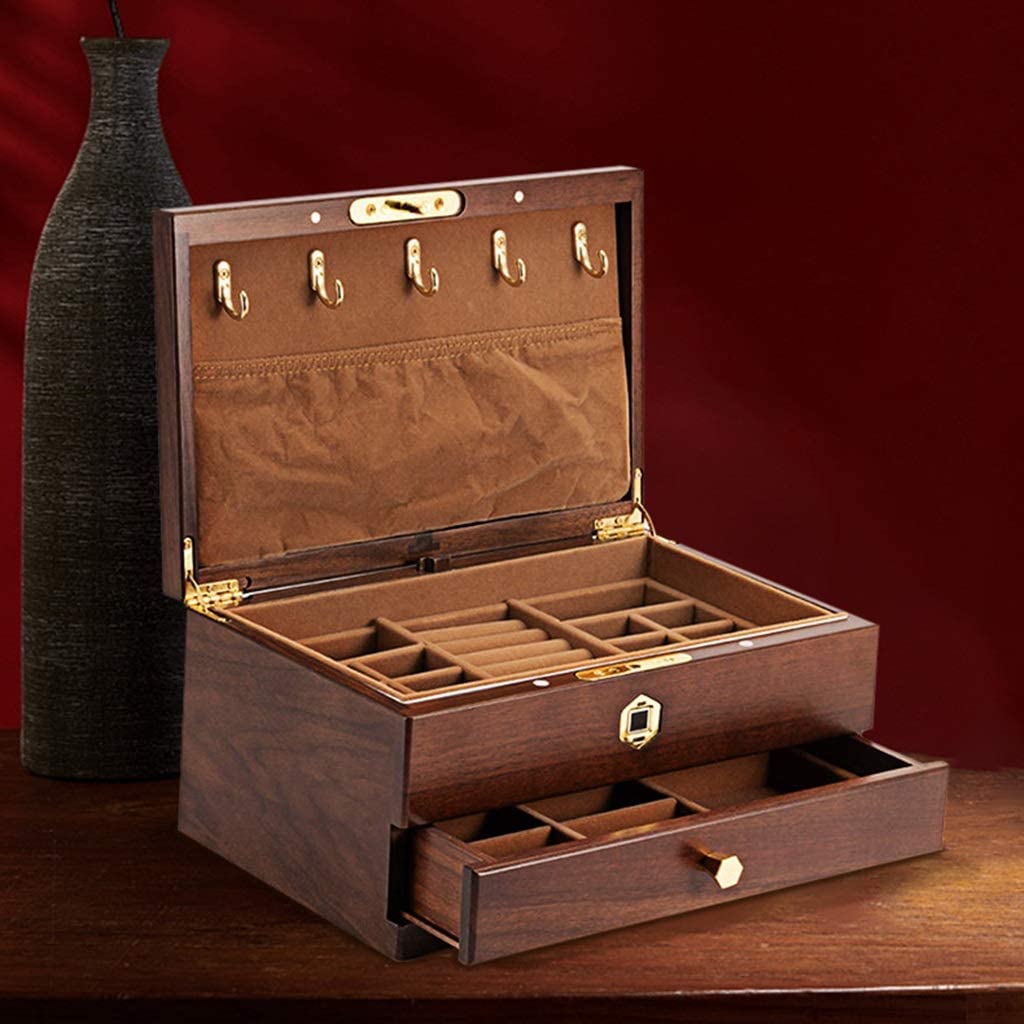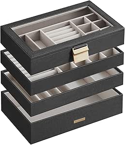 Plateau à bijoux en bois empilable pour colliers, bracelets, bagues, boucles d'oreilles - 5 compartiments Yhwocd Boîte à bijoux en bois, boîte de rangement de bijoux, étui de voyage personnalisé, cadeaux d'anniversaire pour femme, cerise La poignée en laiton massif est non seulement élégante mais également traitée pour résister à l'oxydation, assurant un look luxueux et durable. Il suffit de l'essuyer rapidement avec un chiffon doux et sec. Boite A Jewelry Insert Tiroir Boucles Oreilles Frebeauty - Lot De 9 Plateaux à Bijoux En Velours Noir - Organisateur Empilable Pour Boucles, Bagues, Colliers Plateau Empilable Noir Rangement Pour Bijoux Optimisez votre espace et gardez vos trésors bien rangés. Choix de cadeau élégant : rendez chaque occasion spéciale avec notre organisateur de bijoux. Que vous soyez un collectionneur ou que vous cherchiez un rangement élégant, il est parfait pour les colliers, pendentifs, bracelets de cheville, etc. Une couche est conçue pour les bracelets et les montres, tandis que l'autre est dédiée aux clous, boucles d'oreilles, bagues, et plus encore. Plateaux à bijoux empilables, organisation sans effort : découvrez la perfection de rangement hiérarchique avec cette boîte à bijoux. ProCase Lot de 3 plateaux à bijoux empilables en velours pour commode... Matériau de qualité supérieure, beauté intemporelle : notre boîte à bijoux en bois avec couvercle est fabriquée en noyer et bois de cerisier de haute qualité.