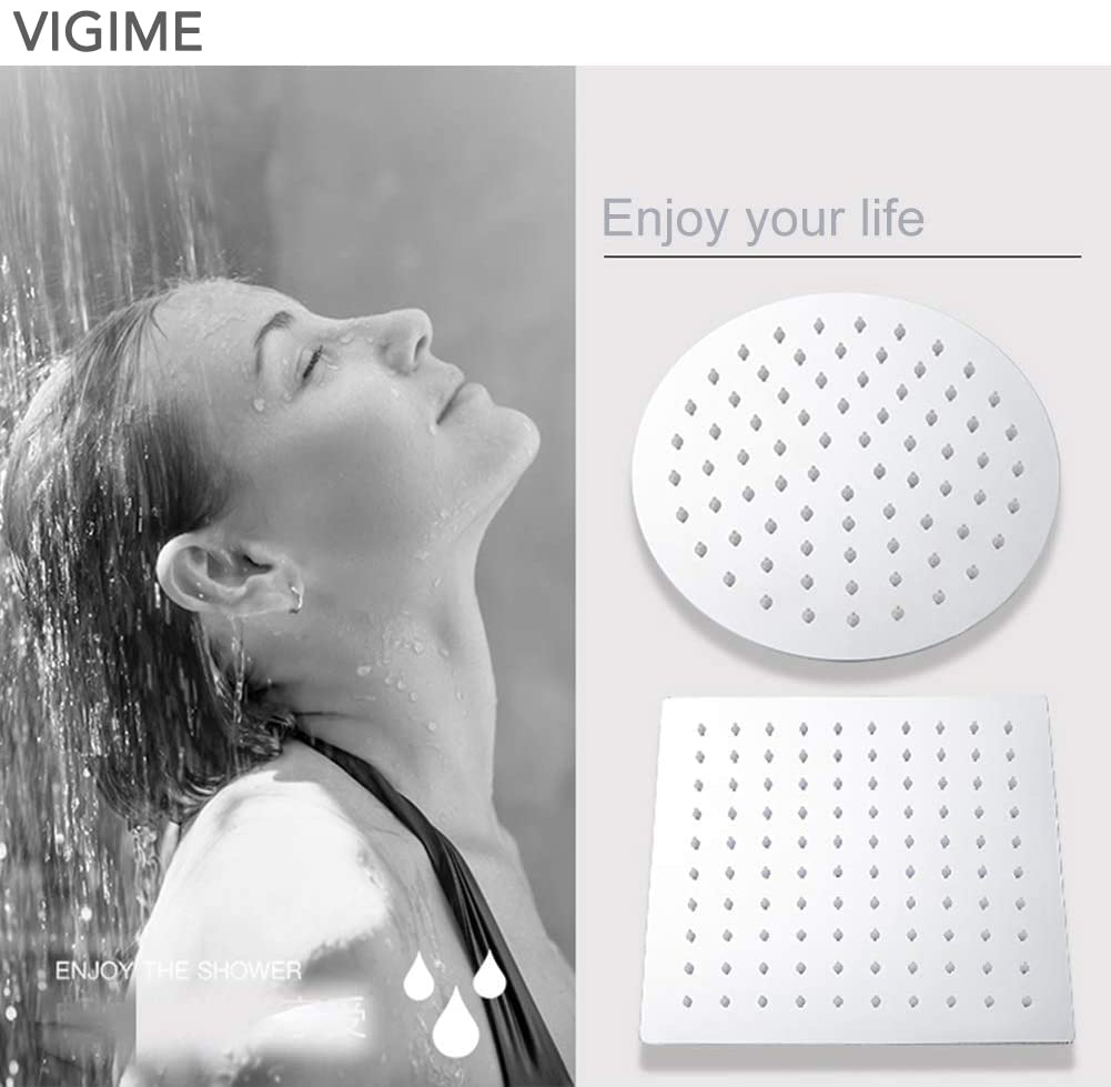 Le design haute pression vous offre une douche très confortable. QWORK® Pomme de douche à effet pluie 20,3 cm, pommeau de douche Expérience pluie et buse en silicone autonettoyante : La douche pluie projette de l'eau à haute pression, vous donnant la sensation d'être sous une averse. Une... Avec le design de connecteur à boule pivotante, vous aurez la meilleure expérience de douche Buses en silicone auto-nettoyantes remplaçables – 90 jets flexibles autonettoyants (fabriqués en silicone de qualité alimentaire) empêchent le calcaire de coller, ce qui empêche les trous de se bloquer et de goutter. L'angle du pommeau de douche peut être ajusté directement, et il est facile à installer et à démonter. Très lisses, hautement polies, finition chromée effet miroir, ce qui en fait un bel ajout à tout style de décoration d'intérieur Nous sommes totalement confiants que vous serez impressionné par notre pommeau de douche. Pommeau de douche rond en chrome poli, 20,3 cm Matériau : Acier inoxydable 304., Dimensions : 20 x 20 cm., Poids : 590 g., Finition : Chrome poli., Épaisseur : 0,2 cm., Connexion : standard G1/2., Forme : Rond Chaque buse peut être facilement remplacée en moins d'une minute si nécessaire Les pommeaux de douche VIGIME de 20,3 cm sont fabriqués en acier inoxydable 304 de qualité supérieure pour une meilleure résistance à la rouille et aux fuites. Très lisses, hautement polies, finition chromée effet miroir, ce qui en fait un bel ajout à tout style de décoration d'intérieur. Pommeau de douche à effet pluie chromé Pommeau Douche Pluie 20,3 Cm Chromé - Haute Pression Et J 890403 Nous vous invitons à ajouter au panier maintenant et à être réveillé à votre nouvelle expérience de douche