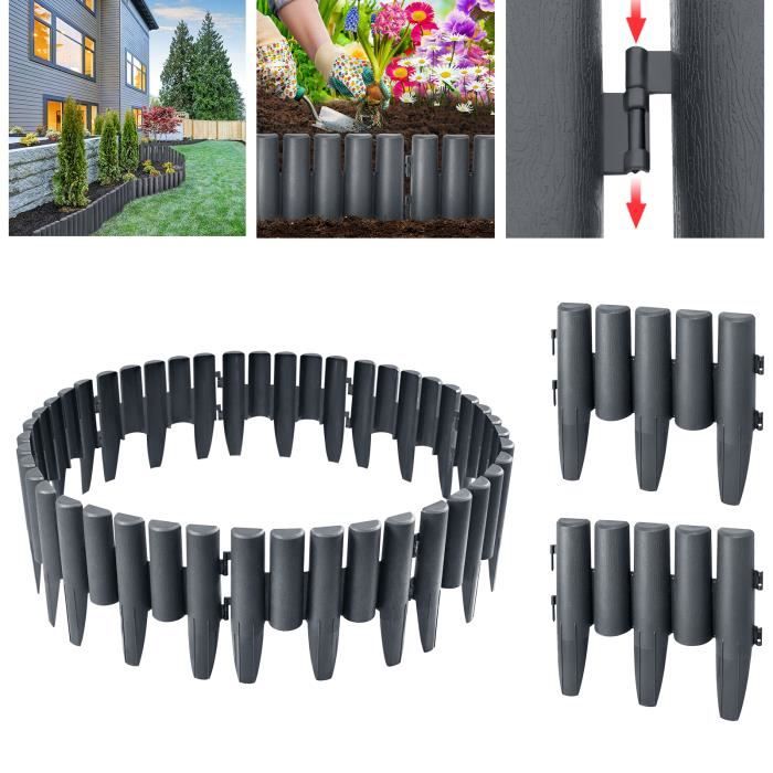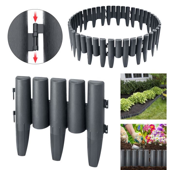 Contenu du paquet : 1 x housse de chaise. Bordure de paysage VGEBY - Mur haut creuser en PE gris 10x5x1000cm - 30... Et vous pouvez utiliser les ciseaux pour couper facilement la longueur selon vos besoins. Bordure De Jardin LINSHRY De 20 M 66 Pi Sans Creuser, 5 Cm De Haut Avec 60 Pointes En Plastique Flexible Pour Am Nagement Paysager Parterre Fr Longue durée de vie année après année. Description du produit : YUYIUS Kit de bordure de jardin Bordure de 3,8 cm d'épaisseur Chaque bordure de paysage mesure 5,1 cm de haut et 0,4 cm d'épaisseur. Bordure paysagère robuste Notre kit de bordure paysagère est fabriqué en polyéthylène et PP de qualité supérieure, peut résister à toutes sortes de conditions météorologiques. Idéal pour les parterres de fleurs, les aires de jeux, la terrasse et le jardin. Bordure de paysage robuste de 0,4 cm d'épaisseur : la bordure de pelouse durable de 0,4 cm d'épaisseur, qui est différente de la bordure de paysage plus fine et légère. Il peut également être facilement coupé à la longueur requise. Pas de creusement Vous pouvez facilement insérer les piquets dans le sol en utilisant un marteau pour sécuriser la bordure de la cour. Quelle bordure de jardin choisir - type, matière, pose Associée à une hauteur de 5,1 cm, cette bordure d'aménagement paysager robuste convient pour les parterres de fleurs, la cour, les aires de jeux, les allées L'extensibilité, l'épaisseur et le poids lourd permettent à cette bordure de paysage de résister à tous les types de temps, y compris le soleil chaud et les fortes pluies ou la neige. 12m Bordure de Jardin sans Creuser avec 60pcs 20cm Piquets ; Couleur. Noir ; Matériau. Polyéthylène (PE) ; Marque. Graxury ; Dimensions du produit. 12L x 0,04l... Bordure de pelouse de 12,2 m 60 piquets., 3 connecteurs. Il reste toujours droit à l'extérieur. Bordure de parterre de jardin flexible et découpable : la bordure d'aménagement paysager est assez flexible et peut se plier facilement pour faire des courbes ou des sections droites sans se casser. Il peut être utilisé année après année et nécessite un minimum d'entretien