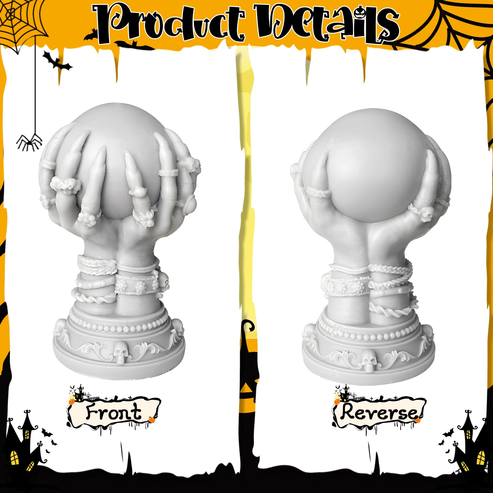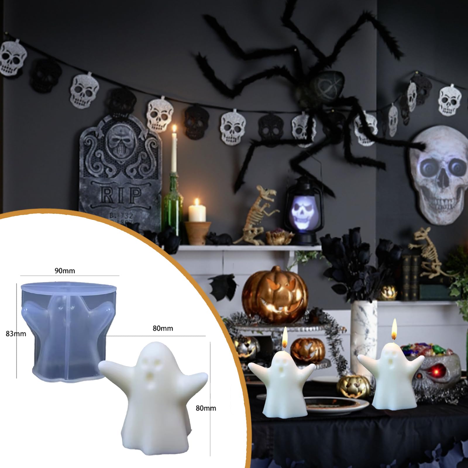 Contenu : 2 moules en silicone 3D pour bougie Halloween Remarques : La taille peut varier légèrement. Design réaliste : chaque facteur d'Halloween est réaliste et détaillé, qu'il s'agisse d'une main fantôme ou d'un fantôme crâne, c'est incroyable. Ensemble de moules en silicone : deux moules à bougies d'Halloween différents à la fois, qui peuvent être utilisés séparément ou en combinaison pour créer une variété d'effets de mise en page. Que vous souhaitiez façonner une bougie design en forme de cœur, de fleur, de coquillage ou encore de lune, ou réaliser des fondants parfumés ludiques, cette collection est faite pour vous Matériaux de qualité : flexibles, lavables et réutilisables, les moules à bougies d'Halloween sont fabriqués en silicone de qualité alimentaire de haute qualité... Juome Lot De 2 Moules En Silicone 3D En Forme De Fantôme D'Halloween Pour La Fabrication De Bougies, Moules En Résine Fantôme Pour Décoration D' Halloween, Bougies D'aromathérapie, Savon, Cire, Plâtre Si vous avez des questions, veuillez nous contacter DW4Trading Moule en Silicone Halloween 6 Pièces - Bougies - Moulage en Plâtre et Époxy Amusement illimité : qu'il s'agisse d'une rose fantôme ou d'un fantôme crâne, vous pouvez mélanger la couleur de la bougie comme vous le souhaitez et donner libre cours à votre créativité illimitée. Matériau : fabriqué en silicone résistant aux hautes températures, il est résistant aux hautes températures, facile à démouler, sans stress pour une utilisation répétée, sûr et respectueux de l'environnement, de sorte que votre création est sans soucis. Décoration d'Halloween : placez quelques bougies d'Halloween faites maison sur la table de fête, les marches devant la porte, ou le coin près de la fenêtre pour créer une atmosphère de vacances unique.
