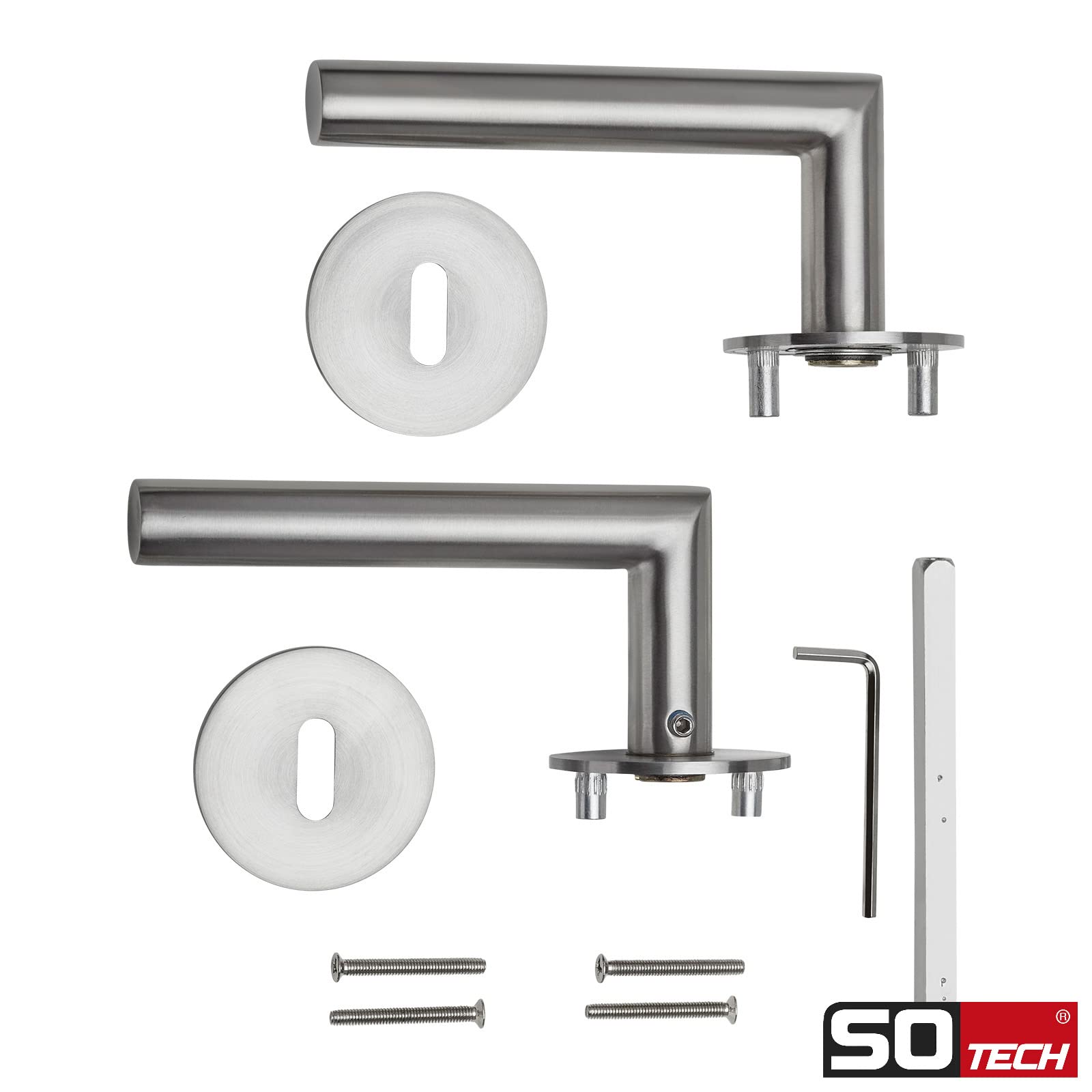 Disponible en : Salle de bain (WC) Ensuite, on perce les trous conformément aux marquages., Attention ! Portes de chambres (BB), Cylindre profilé (PZ) Ensuite, pressez le cache de la rosace sur les supports et vissez la poignée de porte sur la tige carrée à l'aide des vis sans tête fournies. Garniture De Béquille THORE Cylindre Profilé (PZ) Acier Inox SS304 Poignée De Porte - Cylindre Profilé - Garniture De Porte En Forme De U - Rosace En Plastique... Pour cela, le gabarit de perçage doit également être posé de l'autre côté. Ne pas percer complètement les portes - risque d'éclats ! La garniture s'adapte à toute porte de chambre usuelle d'une épaisseur de 35 à 52 mm et à une serrure encastrée d'une distance de 72 mm. / Contenu de la livraison : 1 x garniture de poignée, matériel de fixation inclus Béquilles de porte rosace - commander dans la boutique Häfele France. Il ne faut pas percer complètement les portes, car elles se fendent à la sortie du foret ! / Pour épaisseurs de porte : 35 - 52 mm / La poignée est solidaire de la rosace (pivotante) / Vis sans tête avec vernis de sécurité / Hauteur de la rosace plate seulement 3 mm / Avec technique de rosace magnétique extrêmement puissante : fixation magnétique du cache de la rosace par technique de clipsage ✅Dimensions : Poignée : 130 x 60 x Ø 20 mm / Dimension de la rosace : Ø 55 x 3 mm / Distance entre les vis : 38 mm (standard) / Tige carrée : 8 x 8 x 110 mm / Vis sans tête : 5,8 x 8 mm / Vis traversante : 4 x 35 mm Permet la mise en conformité des portes existantes aux normes d'accessibilité sans changer de serrure, ni de poignée. Garniture permettant de décaler la fonction (bec-de-cane ou condamnation) à 100 mm ou 200 mm de l'axe de la serrure, et de renvoyer le mouvement ✅Matériau : acier inoxydable SS304 / Surface : brossée / Poignée avec ressort de rappel intégré / Convient aux portes tournant à droite et à gauche ! ✅Montage : la tige carrée est insérée dans l'ouverture prévue (fouillot de serrure). Visser le support de rosace des deux côtés à travers la porte. Percer des deux côtés ! Visser le cache de la rosace des deux côtés sur le support et serrer la poignée de porte avec les vis sans tête. Vissez maintenant les supports de rosace entre eux des deux côtés à travers la porte. Garnitures de sécurité en acier avec protecteur de cylindre - béquille