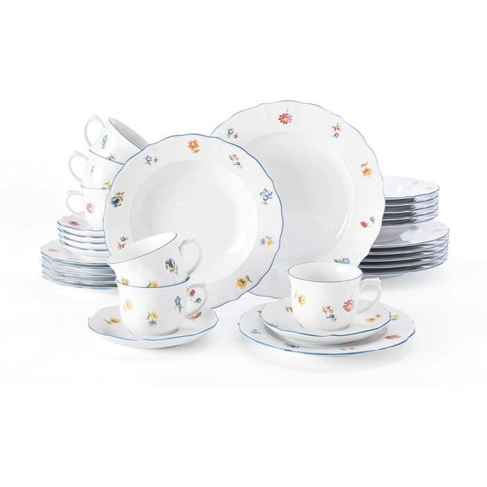 Cet ensemble se compose de 6 assiettes plates, assiettes creuses, assiettes petit-déjeuner, dessus de café et soucoupes , Fabriqué en Allemagne , Marque : Seltmann Weiden Seltmann Weden Tafelservce Tafelservce 12-telg - Mareluse Wehnachtsnostalge - 1 Stück... Service à café de 12 pièces Seltmann Weiden - Label Emmaüs Aspect à transmettre : « Ici, je me sent bien - je suis à la maison ». Seltmann Weiden Service De Table De 30 Pièces - Marieluise Ce lot se compose de 6 assiettes plates, assiettes creuses, assiettes à petit-déjeuner, soucoupes et soucoupes · Porcelaine dure, cuite à 1450 °C, ce qui permet... La forme à succès « Marie Luise » (ré) présente les normes et valeurs. La culture rencontre la tradition.