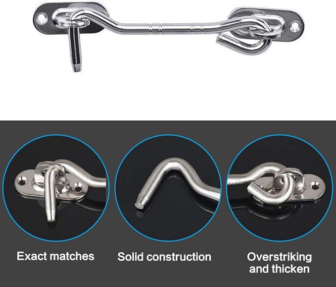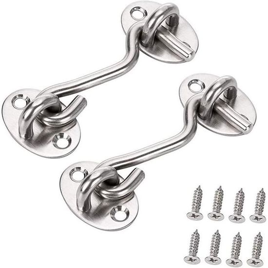 2pcs Crochets tepête de Cabine Crochet en acier inoxydable 200 Combinaison : Comprend 2 crochets de serrure de porte, équipés de vis, avec une taille de crochet de 75 mm, une épaisseur de barre de 6 mm, un espacement des trous de 27 mm. Crochet Cabine 2 Pièces,Noir (10cm) ,Crochet Fermeture Porte,Serrure à Crochet de Porte en Acier... Crochet De Porte Cabine Crochet Cabine 2 Pièces,Crochet Fermeture Porte,Serrure à Crochet De Porte En Acier Inoxydable Argent,Avec Vis De Montage,Pour Fenêtre,Porte De Grange, Porte De Hangar,Porte De Garage(15cm Crochet Pour Cabine Loquet à crochet et à œil LIYUABU facile à installer, détachable et réutilisable, y compris les vis accessoires, pas besoin de fente et maître d'installation de porte en bois expérimenté, économisant du temps et des efforts. Spécifications : Le forfait comprend: 2 * crochet de cabine, 4 * loquet à œil, 8 * vis de montage Matériau L'ensemble de l'appareil est très pratique, de sorte que vous pouvez l'installer à différents endroits selon vos besoins.