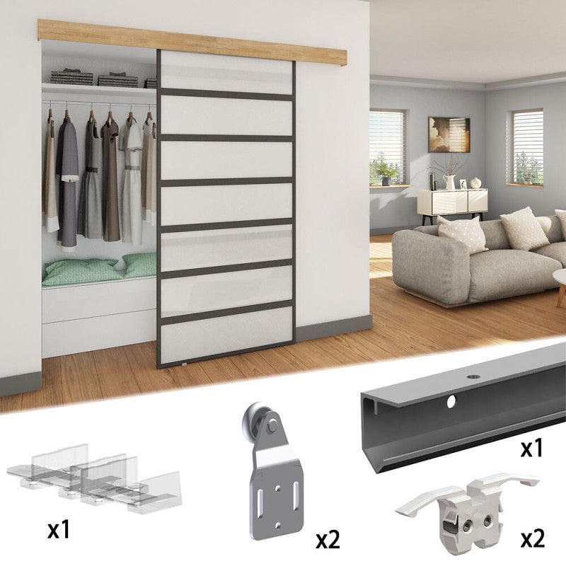 Kit comprenant le rail et les accessoires pour une pose facile Mantion rail au meilleur prix | Leroy Merlin Kit coulissant en applique pour 1 porte extérieureMontage au plafond possible avec supports en option Poids max de la porte : 140 kg Epaisseur de la porte : 30 - 40 mm Longueur du rail : 1,95 m Matière du rail : acier galvanisé Matière des montures : acier Garantie : 5 ans Utilisable en rail simple ou double. Système coulissant SLID'UP 1200 à montures réglables pour 1 porte extérieure - rail 1,95 m acier galvanisé. Pour 1 porte extérieure jusqu'à 40 kg Utilisable en intérieur comme en extérieur, Silence et souplesse, Garantie : 5 ans Contenu du kit : - 2 montures - 2 platines de fixation - 2 butées - 1 guide bas - 1 rail de 1,95 m en acier galvanisé - 1 clé plate, vis de pose et notice de montage Options : Ce kit contient les éléments nécessaires pour un montage au plafond. Fixation au plafond ou en applique (avec équerres de fixation murale en option) Système coulissant à montures réglables, utilisable en intérieur comme en extérieur. Coulissante Exterieur Leroy Merlin Système Coulissant SLID'UP 2000 Pour 1 Porte Extérieure 50 Mm Max Rails 2 X 195 M Acier Galvanise 80 Kg Rail Porte Coulissante Double Kit comprenant le rail et les accessoires pour une pose facile Pour 1 porte extérieure jusqu'à 40 kg Fixation au plafond ou en applique (avec équerres de fixation murale en option) Rail 1,95 m en acier galvanisé Utilisable en intérieur comme en extérieur Silence et souplesse Garantie : 5 ansSystème coulissant SLID'UP 1200 à montures réglables pour 1 porte extérieure - rail 1,95 m... Utilisable en intérieur comme en extérieur