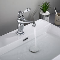 Matériau durable Ce robinet monobloc pour lavabo de salle de bain est fabriqué en laiton massif épais avec une finition chromée de qualité supérieure, résistant à la corrosion, à la décoloration et à la rouille., Facile à nettoyer. Matériau durable : ce robinet d'évier monobloc est fabriqué en laiton massif épais avec une finition chromée de qualité supérieure, résistant à la corrosion, à la décoloration et à la rouille. Il est doté de deux poignées en croix pour un contrôle aisé du débit et de la température de l'eau. Matériau de haute qualité : Le corps de ce robinet mitigeur... Économie d'eau et pas d'éclaboussures : l'aérateur haute performance de la sortie du robinet rend non seulement le débit d'eau confortable au toucher sans éclaboussures, mais permet également d'économiser 30 % d'eau par rapport aux robinets d'évier ordinaires Un barboteur amélioré est intégré dans la sortie d'eau Plus grande surface propre : le bec verseur à arc haut vous offre une zone de nettoyage plus large sans vous mouiller autour de l'évier, et la salle de bain semble plus propre. Robinet mitigeur traditionnel à double poignées pour lavabo de salle de bain Un moyen idéal pour améliorer votre salle de bain Le look victorien rencontre la fonction moderne, ajoutez du glamour à votre salle de bain avec ce robinet de lavabo traditionnel vintage à double levier. Contenu : 1 robinet mxier de lavabo + 2 tuyaux d'alimentation flexibles G1/2 + matériel de montage + manuel d'installation (français non garanti). Le robinet mitigeur de salle de bain traditionnel est durable et fiable. Facile à installer : les accessoires standard rendent ce robinet pivotant à 360° facile à installer. Vous pouvez l'installer vous-même sans plombier en suivant les instructions fournies. Ce robinet mitigeur col de cygne est livré avec une garantie de 5 ans, si vous avez des questions sur ce robinet col de cygne, n'hésitez pas à nous... Si vous rencontrez des problèmes, veuillez nous contacter à tout moment, nous vous fournirons certainement la meilleure solution dans les 24 heures Robinet Leroy Merlin Robinet Mitigeur Pour Lavabo Mural En Laiton Double Levier à 3 Trous Argenté Ishinca Robinet Lavabo Pivotant 360 Économie d'eau : permet d'économiser 30 % d'eau par rapport aux robinets de lavabo ordinaires. Design élégant : le bec verseur en forme de col de cygne donne au mitigeur de salle de bain un aspect élégant et se fond dans la plupart des styles de décoration. Ce robinet de salle de bain chromé est livré avec 2 cartouches de valve en laiton de haute qualité, qui offrent une action de rotation fluide et empêchent les gouttes. Pas d'éclaboussures : l'aérateur haute performance de la sortie du robinet d'évier rend le débit d'eau confortable au toucher sans éclaboussures. Robinet mitigeur pour lavabo à bec haut chromé Delta 06 Griferias MR