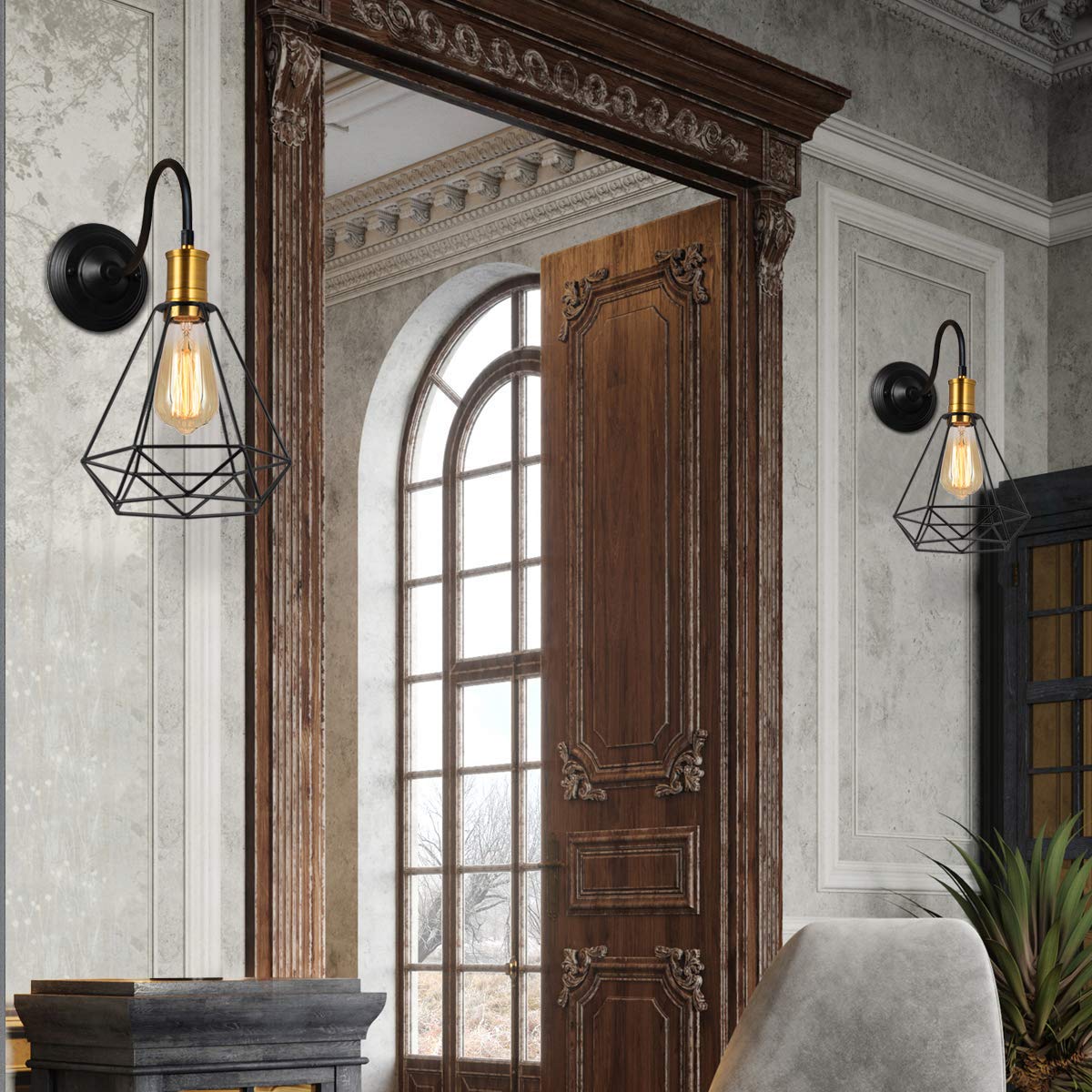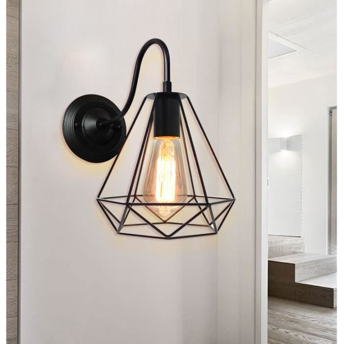 Convient pour ampoule led / ampoule à incandescence / ampoule halogène E27. 🌸 Application: L'abat-jour simple et la douille de lampe en bois créent un design moderne et créatif. Convient pour la chambre à coucher, le salon, la salle à manger, la cuisine, le café, le bar et de nombreux autres endroits intérieurs iDEGU Applique murale au design rétro et industriel, au look vintage et élégant. Type de lampe: Incandescent / Halogène / LED Tension: 110 - 240V Puissance maximale: 60W Couleur: Noir Quantité: set de 2 appliques murales Dimension: Cage: 20 * Ø 20 cm Base de plafond: Ø 14cm IDEGU Applique Murale Intérieur en Corde de Chanvre Industrielle Lampe Applique Murale Vintage IDEGU Applique Murale Industrielle Noir, Lot De 2 Lampe Murale Vintage Design Rétro Abat-jour Luminaire Cage En Métal Avec Corde De Chanvre, 20CM Appliques Murales Interieures Mais les ampoules ne sont pas inclus. C'est bon pour la véranda, la cuisine, la salle à manger, le salon, la chambre à coucher, le restaurant, le café et le bar. Cette applique murale de style industriel et rustique apportera à votre chambre une impression vintage et rétro. Lampe murale à structure simple et lampe livrée avec des accessoires d'installation très faciles à installer. Ce n'est pas seulement une applique intérieur, c'est aussi une décoration pour vos espaces résidentiels et commerciaux. IDEGU Lot de 2 lampes murales intérieures 16 cm vintage en métal design cage noire E27 éclairage de plafond orientable lampe murale pour salon salle de bain... Spécifications: Style: Industriel, Vintage, Géométrique, Décor Matériaux: Métal Base de l'ampoule: E27 Ampoule incluse: Les ampoules ne sont pas incluses.