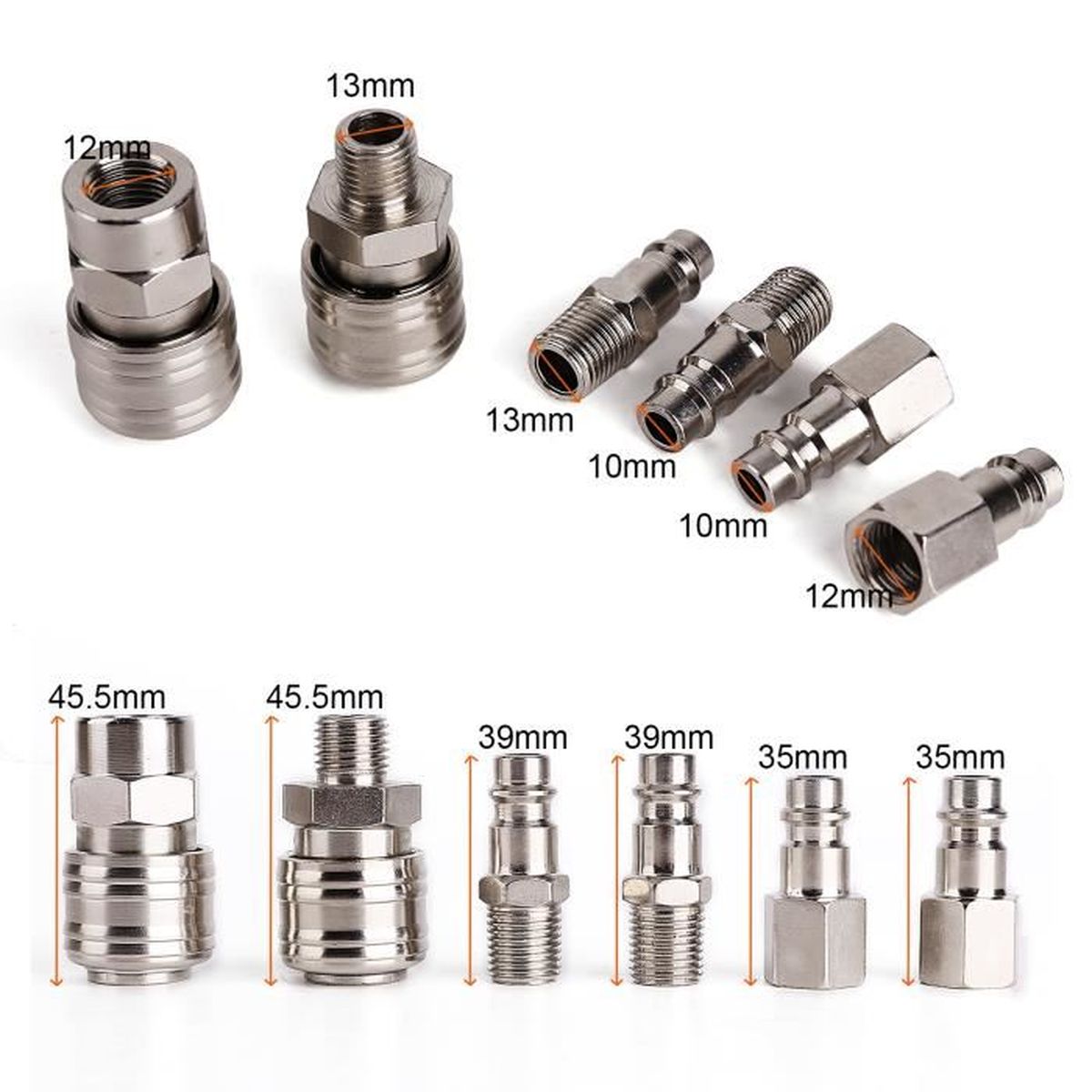 Normes les plus élevées. Produit ProfiPaul d'origine. Bonne performance d'étanchéité pour éviter les fuites d'air lors du changement d'outil Raccord / raccord rapide pneumatique en métal de type T de 8 mm pour tuyau d 'air comprimé Grande gamme et un partenaire fiable - Ce qui nous distingue par ProfiPaul Large gamme et un partenaire fiable cela nous distingue par ProfiPaul ✅ Meilleure qualité : nous proposons des raccords à air comprimé de qualité supérieure en acier avec fiche d'air comprimé, filetage intérieur, filetage extérieur et raccord de tuyau (LW) YID Raccord à compression en acier inoxydable (12)2 Pièces Raccord De... ✅ Convient pour : raccord d'air comprimé pour conduites d'air, outils pneumatiques, etc. ✅ Auto-étanche : nos filetages extérieurs sont munis d'un composite auto-scellant de haute qualité, ce qui permet un montage sans effort sans étanchéité supplémentaire Convient pour : Raccord d'air comprimé pour conduites d'air, outils pneumatiques, etc. Nos raccords d'air comprimé sont disponibles en différentes tailles Iqs Lot De 10 Raccords Pneumatiques Coudés À 90° 10 Mm – Raccord De... Raccord Tuyau Gaz Adaptateurs Pour Raccordement Air Comprimé Comprimé Ressort Produit en laiton massif pour une résistance à la rouille et à la corrosion.