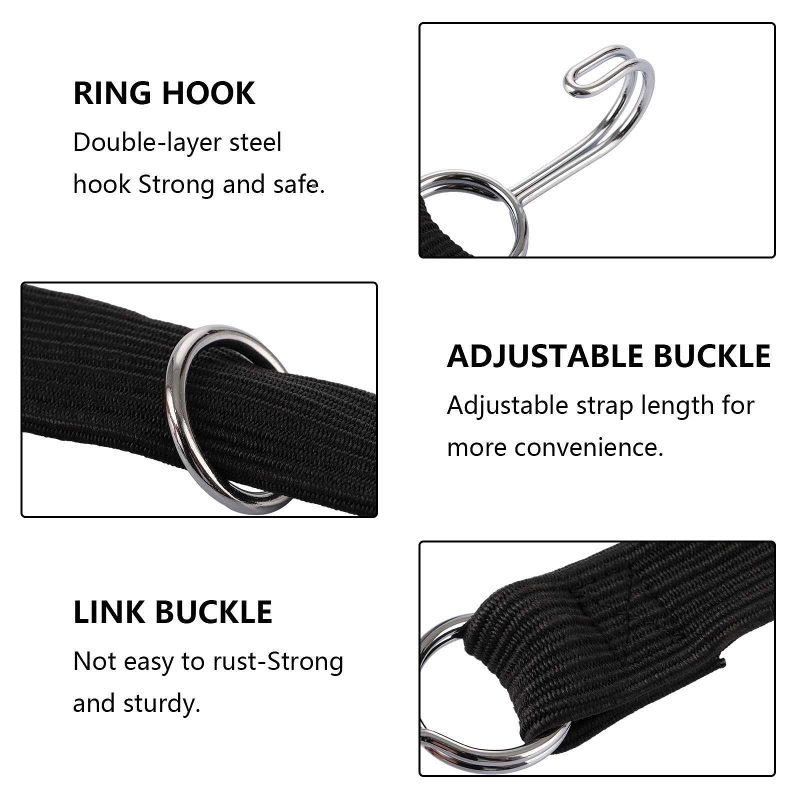 Corde de serrage plate en caoutchouc avec crochet inversé offrant plus d'espace pour la fixation. et le fil de nylon à l'extérieur a une bonne résistance aux intempéries, ce qui lui permet d'être utilisé pendant une longue période sans déformation. Tendeur Elastique Avec Crochet Lot De 2 Tendeurs Avec Crochets, Sangle En Caoutchouc Sangle Pour Diable Les crochets doubles en métal sont inoxydables et plus solides. Haute élasticité : l'élastique avec crochet offre une élasticité exceptionnelle qui permet une fixation sûre et flexible de vos objets. Le tendeur en caoutchouc avec crochet peut non seulement être utilisé pour fixer des bagages sur des vélos, des motos ou des voitures, mais aussi pour les cartons de déménagement, l'utilisation à la maison, le camping ou la suspension de vêtements, etc. Par rapport à une corde élastique ronde ordinaire, la sangle élastique plate plus large peut maintenir la charge plus fermement. Tendeurs Elastique avec Crochets, Lot de 15 Cordon Élastique , 25cm Tendeur en caoutchouc avec crochet pour voiture, filets de remorque, voiles d'ombrage, bâches. Large utilisation : l'ensemble de cordes élastiques est un outil idéal pour de nombreux besoins différents. Tendeur de bagages réglable, résistant au vieillissement et aux déchirures, ce qui garantit une utilisation fiable pendant une longue période. Tendeur en caoutchouc avec crochet]Pour fixer des bâches, des tentes, des tendeurs de bagages, des vélos, des tendeurs de voiture, des tendeurs de moto et bien plus Convient pour toutes les conditions météorologiques, idéal pour la construction d'abris ou le camping et d'autres activités de plein air., [Lot de tendeurs de bagages]2 élastiques de 200 cm Une bonne qualité à prix abordable. Tendeur en caoutchouc avec crochet, extrémité arrondie pour éviter les rayures ; crochet pivotant pour une fixation facile Longueur de chaque tendeur avec crochet : 100 cm, largeur : 3 cm, boucles d'extension de 100 cm à 150 cm.