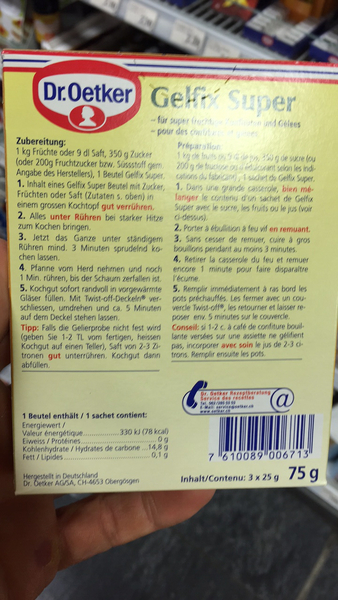 Mode d'emploi Pour chaque sachet de Gelfix Extra vous avez besoin de 1000 g de fruits préparés et de 500 g de sucre ou de gélatine, de 750 ml de jus de fruits et de 400 g de sucre. N° 6 Dr. Oetker - Gelfix Extra Gelling poudre (Gelfix Extra Gelierpulver) | Poids Total 50 grams 6.95 € Détails et Avis N° 7 Dr. Oetker Chocolate Pudding 3 pack 9.99 € Détails et Avis N° 8 Dr Oetker 1449 Moule à tarte, Moule à tarte renversée, Moule à gâteau, Moule à gateau, Tarte renversée, Acier inoxydable, Noir, 28 cm x 3,5 cm Sugar Where To Buy Dr.Oetker Gélatine Gelfix Extra 2:1 3 X 25 G Dr. Oetker Dr oetker : le top 20 des de 2025