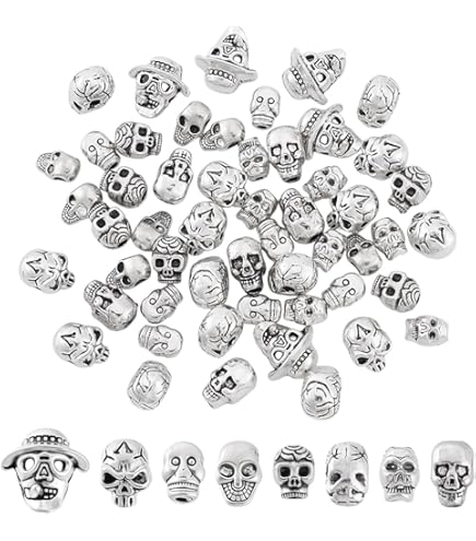 Couleur : argent vieilli (argenté). Avec ces perles en métal, vous réussirez vos bracelets, colliers, boucles d'oreilles, porte-clés, chaînes et autres bijoux en un tour de main. Collier Fantaisie long sautoir perles métal argenté Perle Tete De Mort Argent Lot De 12 Perles En Métal - Motif Tête De Mort - Argenté - 12 Bracelet Tete De Mort Argent Qualité : 12 (douzes) magnifiques têtes de mort mystiques en argent antique et en alliage de zinc de qualité supérieure. Jetez un coup d'œil ! Design gothique - Les perles d'eau douce sont sculptées à la main dans des crânes humains miniatures. Forme / couleur : la taille des perles en métal est de 12 x 8 mm - Trou de 3,7 mm. Nous avons accès à plus de 5 000 articles et avec une grande probabilité exactement les accessoires de bricolage dont vous avez besoin pour réaliser vos idées créatives. Chargements faits à la main : vous trouverez d'autres articles dans notre boutique. Taille : environ 8 mm de large, 13 mm de long, 9,5 mm d'épaisseur, trou : 2 mm. · Matériau : laiton oxyde de zirconium, couleur du métal Breloque en métal tête de mort pirate 14x13 mm argent vieilli x1... Cool Skull Earring Dangle - Élégant, mignon et avec une touche de féminité fantomatique terrifiante. Remarque : en raison de la perforation de 3,7 mm, nous recommandons tous les types de cordons, cordons en cuir, bandes en nylon, rubans en satin, rubans élastiques, rubans macramé ou cordons jusqu'à 2 mm.