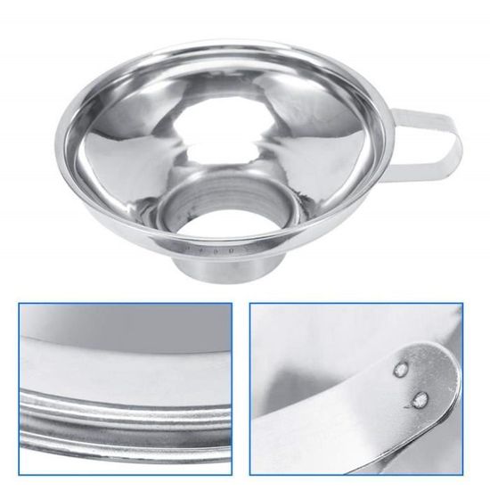 Entonnoir à Large Ouverture En Acier Inoxydable Pour Conserves Ustensiles De Cuisine Gadgets Entonnoir Avec Poignee Pour Confiture 85417208 Nos conditions de livraisonCet entonnoir tout inox facilite le remplissage des verrines, des conserves et des pots à confiture de toutes tailles grâce à son double embout. ( diamètre 3.5 cm pour mini récipient et 6 cm pour les pots traditionnels) Son large diamètre supérieur de 15cm permet verser facilement la préparation avec une louche. Facilement maniable grâce à sa poignée Entonnoir Confiture Entonnoir à Confiture - Acier Inoxydable 35mm - DL300 - Kitchen Craft Entonnoir Inox Professionnel Entonnoir de Confiture en Acier Inoxydable Entonnoir à cannelure Large... Livraison gratuite à partir de 50 € !