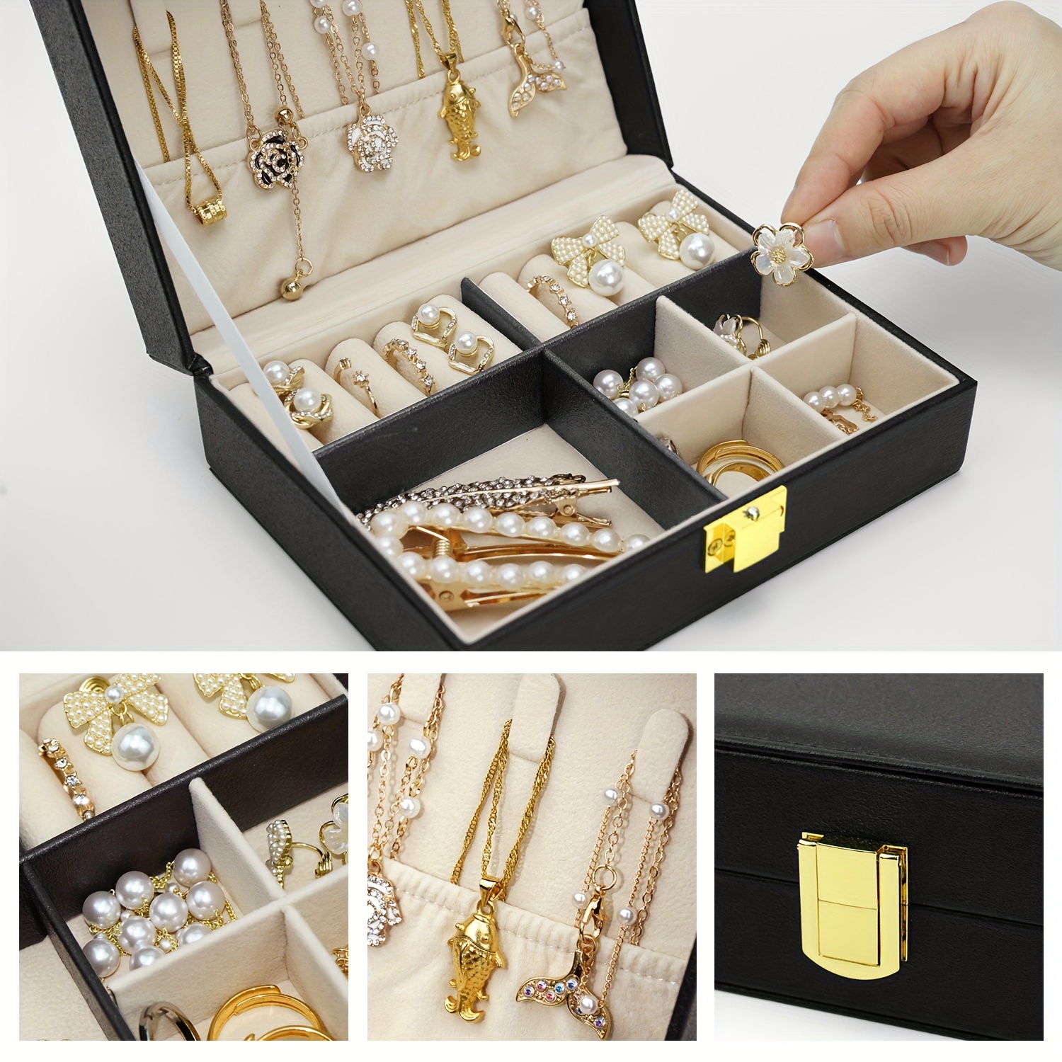 Essayez-le, peut-être que vous aimerez le magasin de « Papten » 124 vendus 4.2. Boîte de rangement de bijoux en cuir PU de haute qualité, cofet cadeau pour bagues, boucles d'oreilles, colliers, pendentifs, bracelets, pour... Boîte de rangement à bijoux de voyage en cuir végétalien 6 sacs en velours, boîte de voyage portable, boîte à bijoux rangement collier boucles d'oreilles rangement bracelet - France Nous acceptons également la personnalisation. Boite à Bijoux En Cuir Boîtes à Bijoux Pour Bracelets | Maison Scarlett Coffret A Bijoux En Cuir Dimensions] La longueur, la largeur et la hauteur sont : (Vert)20 cm x 16 cm x 10 cm. Le design à 2 niveaux peut contenir la plupart de vos bijoux de... 1., Matériau extérieur : fabriqué en cuir synthétique de qualité supérieure, élégant et discret, cette élégante boîte à bijoux vous donne une touche haut de gamme., 2., Matériau intérieur : fabriqué en velours doux, protège bien vos bijoux et protège vos précieux bijoux des rayures ou de l'abrasion., 3., Dimensions : 9 x 9 x 3,7 cm (L x l x P). Si vous avez des questions ou n'êtes pas satisfait, veuillez contacter le vendeur pour un remplacement gratuit.