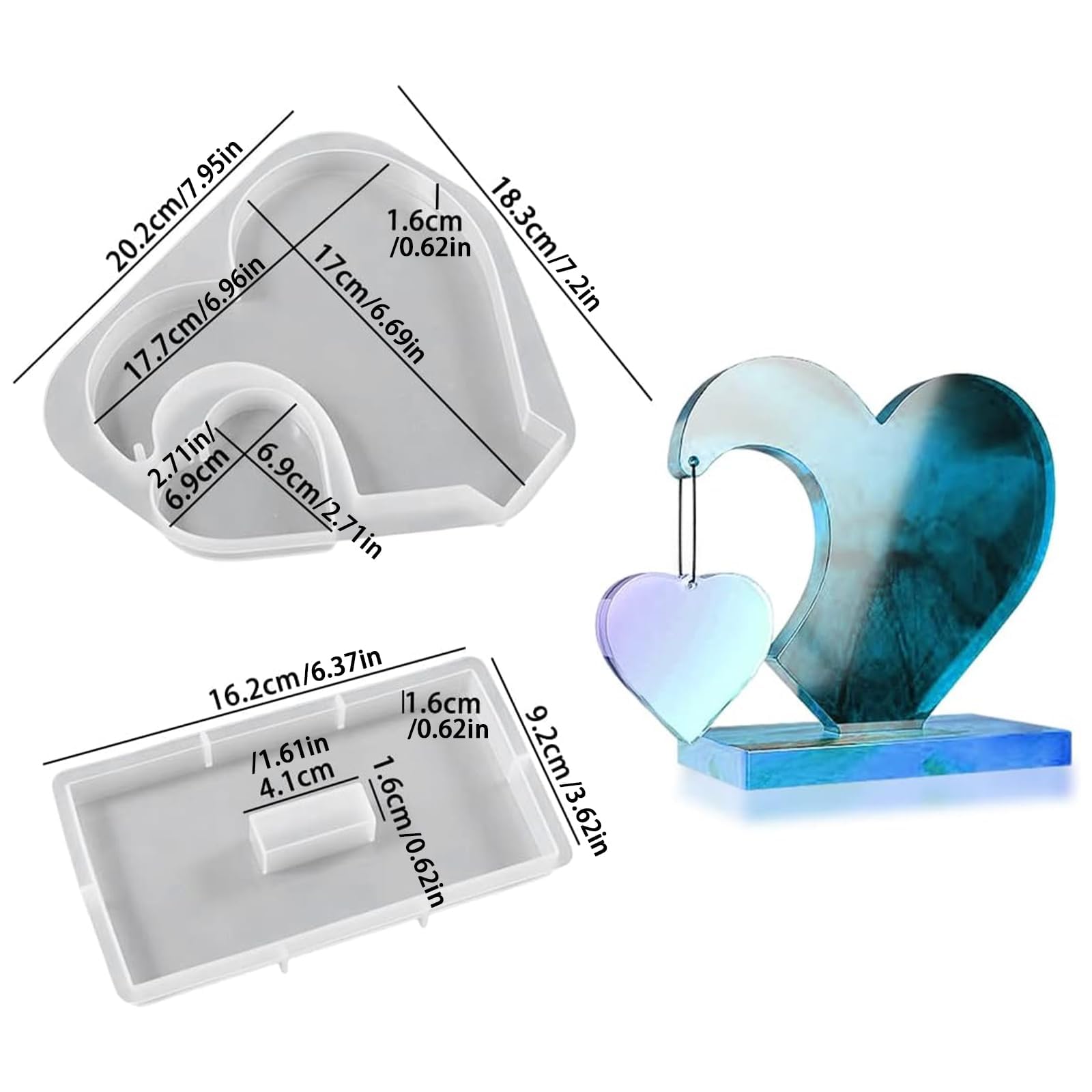 La surface du moule en résine antiadhésive permet un démoulage sans effort sans se déchirer. 【Cadeau idéal à faire soi-même】Choix exquis pour préparer une surprise et des cadeaux personnalisés créatifs avec les moules en résine. Vous pouvez concevoir ce cadre photo unique pour vos amis, votre famille ou votre amoureux comme cadeau pour Thanksgiving, Noël, anniversaire, Saint-Valentin, anniversaire de mariage, etc. Moules Moulage En Résine Silicone - France Taille compacte qui s'adapte à la plupart des espaces de bricolage. Moule Silicone Pour Résine Moules En Silicone, Moules En Silicone à Double Cœur Pour Moules Pour Résine Uv Design convivial : nos moules en silicone à double cœur sont soigneusement conçus pour répondre aux débutants et aux artisans chevronnés, ce qui rend le processus de moulage de résine non seulement simple mais également agréable. Résultats attentionnés prêts à offrir : chaque pièce faite à la main de ces moules en forme de cœur a une valeur émotionnelle. Que vous commenciez tout juste à expérimenter la résine époxy ou que vous ayez des années d'expérience Moules à Plateau pour Moulage en RéSine, Moules en Silicone éPoxy à...