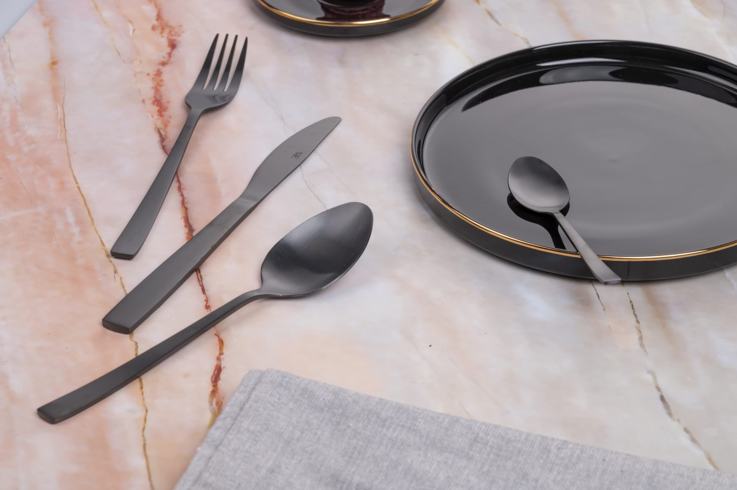 21 cm Cuillère à café : L., 2,7 x 0,3 x h., 13,5 cm 24Bxjsr Jesmond Lot De 24 Couverts En Acier Inoxydable, Couteau... Ménagère 24 couverts BRAME / Inox noir / Angel des Montagnes Modern Set de couverts 24 pièces en acier finition brillante Couverts Noirs J3498 Villa D'Este Home Tivoli Zestaw Pojemników Na żywność 3szt Menagere Noire Fabriqué en acier inoxydable 18/8 avec une finition brillante, ce set est conçu pour embellir chaque occasion, des dîners les plus élégants aux déjeuners quotidiens Les couverts en acier représentent le point culminant de la mise en place recherchée et élégante. Robuste et résistant, il s'adapte également au quotidien de ceux qui ne renoncent pas aux détails.