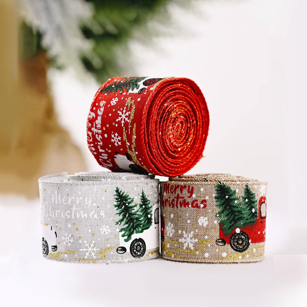 Lot de 6 rouleaux de ruban de Noël à bords métalliques – 2,1 m x 6,3 cm chacun – Ruban de vacances avec voiture, Père Noël, cloches, pommes de pin, bonbons et... Contenu de l'emballage : 2 rouleaux de rubans de Noël en 2 couleurs différentes, rouge et lin. Dimensions approximatives : 5 cm x 5 m. Design : les rubans de Noël sont imprimés avec des motifs sur le thème de Noël, un camion vintage chargé d'arbres de Noël, ainsi que des flocons de neige blancs, pleins d'atmosphère de Noël, ces rubans aux couleurs vives sont attrayants lorsqu'ils sont appliqués pour emballer des cadeaux. Enchantez votre Noël avec notre ruban de Noël rouge festif Créez une atmosphère festive inoubliable avec notre magnifique ruban de Noël rouge. Les rubans de Noël sont imprimés en camion wuith, les arbres de Noël et les flocons de neige blancs, les couleurs vives sont également magnifiques et attrayantes, pour une atmosphère de Noël. Idées d'utilisation créative : apportez une bouffée d'air frais à vos projets de bricolage Bordure élégante pour cartes de Noël ou invitations faites maison Lot de 2 rouleaux de ruban de Noël à bords métalliques de 5,1 cm x 4,5 m pour emballage de sapin de Noël vintage Caractéristiques : Matériau : tissu, lin. Remarques : Le motif est imprimé sur un seul côté. Lot De 2 Rouleaux De Ruban De Noël De 5 M Avec Bordure En Fil De Fer Pour Emballage Cadeau Bricolage Decoration De Festival A Domicile 86313235 Parfait pour les bricoleurs et tous ceux qui apprécient les décorations de Noël élégantes. Ruban Sapin De Noel Lot De 2 Rouleaux De Ruban De Noël À Bord Métallique Avec Inscription Ruban Ecossais Noel Caractéristiques du produit en détail Ruban de Noël rouge exclusif avec "Joyeux Noël" en écriture dorée Décoration de Noël : ces rubans de Noël sont parfaits pour faire des décorations de Noël, vous pouvez utiliser les rubans pour ajouter une atmosphère festive à vos cadeaux de Noël, parfaits pour les fêtes sur le thème de Noël, le motif camion rouge crée un style vintage pour vos objets. Donnez la touche finale à vos sapins, décorations de Noël et emballages-cadeaux grâce à notre sélection de rubans et de tulle vendus en rouleau Vous pouvez utiliser ces rubans de Noël à bords métalliques pour faire des nœuds pour décorer vos arbres de Noël, et vous pouvez également envoyer les rubans à vos amis comme cadeaux. Grâce au matériau satiné robuste, notre ruban décoratif de Noël rouge offre également une qualité durable qui convainc également lors du bricolage avec les enfants. Couleur : conforme à l'image.