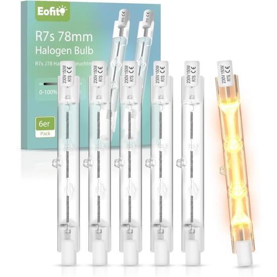 Connexion : 230 V, couleur de la lumière : 3000 K blanc chaud , Flux lumineux : 550 lm , Intensité variable : oui Lot de 10 tiges halogènes type / culot : R7s · Longueur : 78 mm - Puissance : 70 W · Connexion : 230 V, couleur de la lumière : 3000 K blanc chaud · Flux lumineux... EIMOPE R7S LED Bulbs 78 mm Dimmable 10 W, R7S LED Light Bulb 10 W Longueur : 78 mm - Puissance : 70 W Ampoule Halogène 78mm Lot De 10 Ampoules Halogènes R7s 78mm - 60W à 1000W Ampoule Tige R7s Douille R7s, longueur 78 mm (la plus courante). Différentes puissances possibles : 60W, 100W, 150W, 200W, 300W, 500W, voire 1000W – à préciser selon le lot que... Lot de 10 barres halogènes. Couleur de la lumière : blanc chaud 3000 K., Flux lumineux : 550 lm., Intensité variable : oui.
