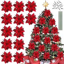 Rose De Noel 12 Pièces Glitter Fleurs De Poinsettia De Noël D’Ornement Deco Noel Sapin Les tiges de ces fleurs de Pâques pour sapin de Noël ont des tiges qui ne tombent pas et peuvent être utilisées à l'intérieur et à l'extérieur. 🎄【Le Forfait Comprend】Le paquet comprend 12 fleurs de Noël, répond à vos différentes exigences décoratives. Matériel]Matière plastique, la surface est en poudre collante. sûr, non toxique pour le corps humain, durable, la couleur n'est pas facile à s'estomper, après réception de la marchandise, la poudre d'or peut être partiellement décollée, n'affecte pas l'utilisation, veuillez ne t'en fais pas. [Le Paquet Contient]Le paquet contient 12 pièces de fleurs artificielles de Noël... 10 Pièces Fleur De Noël De Noël Poinsettia Ornement Glitter Fleurs De... 🎄【Design Unique】La surface de chaque fleur artificielle est pleine de poudre scintillante. FUNNY HOUSE 12 Pièces Glitter Fleurs de Poinsettia de Noël d'Ornement, Noël Glitter Décoration Sapin Ornement pour La Fête de Mariage (Argent 🎄【Occasions Applicables】Les ornements de poinsettia peuvent être appliqués à un mariage de fête, une fête d'anniversaire, le Nouvel An ou une autre décoration de festival, ils mettront en valeur votre fête et vous rendront, vous et vos invités, plus joyeux pour profiter du festival. Comme ces fleurs sont artificielles, elles resteront belles par beaucoup d'autres. La couleur ne s'estompe pas facilement., Longue . Photo à propos Grande fleur rouge de poinsettia dans un Bush.Décoration de Noël. À la fin de Noël, vous pouvez garder ces fleurs sans soins et les avoir prêtes pour la prochaine soirée.