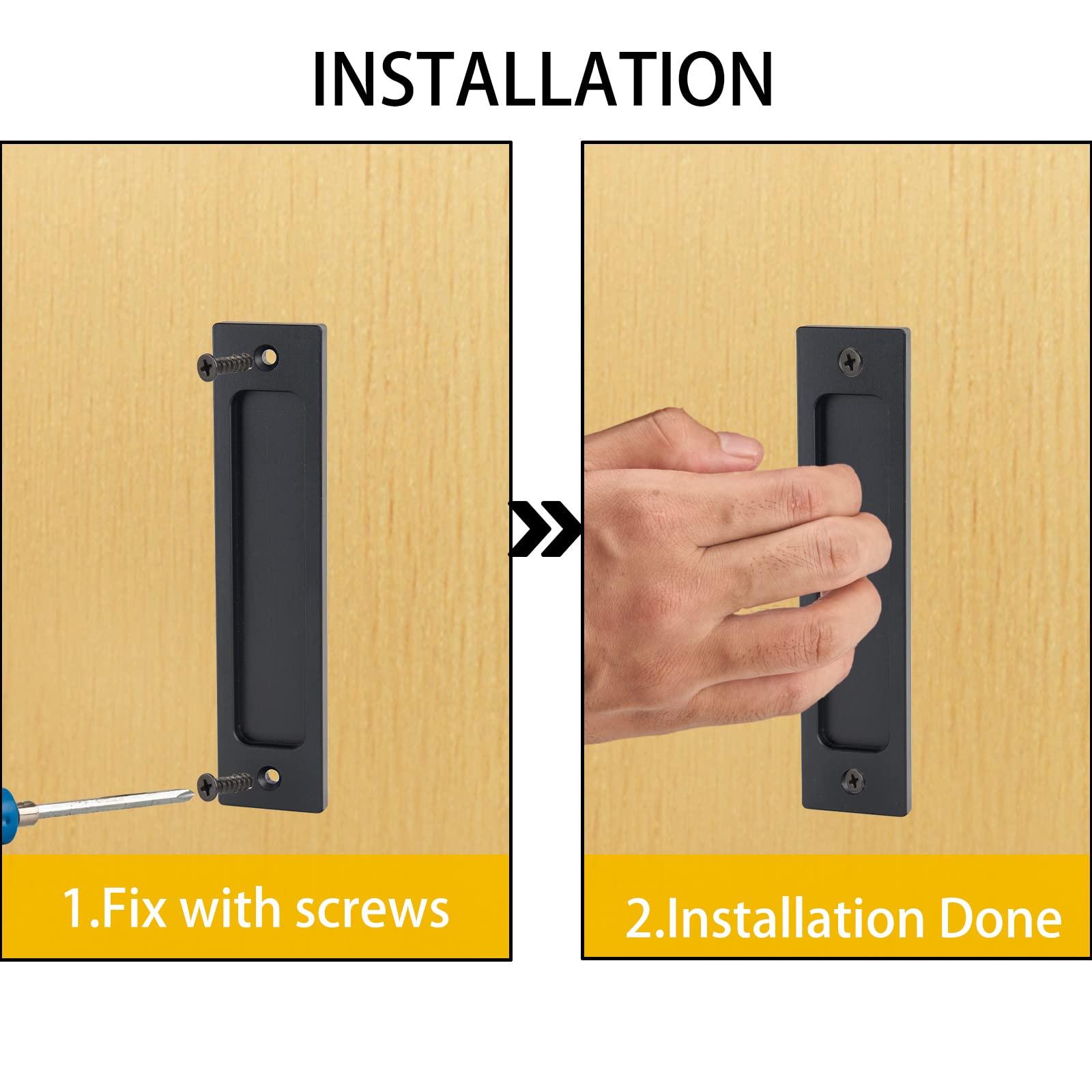 Lot De 2 Poignées Ovales Encastrées Pour Porte Coulissante - Noir Mat En Alliage Aluminium Pour Porte De Grange Coulissante 96512077 Compatible avec la plupart des portes intérieures et extérieures telles que les portes coulissantes, les portes de poche, les portes de placard, les portes pliantes, les portes de grange coulissantes, les portes d'armoire. Fiabilité et durabilité : nos poignées de porte de grange sont fabriquées en alliage d'aluminium de haute qualité, la surface est antirouille et anti-corrosion, et le design épais n'est pas facile à déformer et est durable. La profondeur de la rainure est de 4 mm, veuillez vérifier la taille avant d'acheter. Poignée De Grange Extérieur Lot De 2 Poignées De Porte Coulissante En Aluminium Pour Grange Poignees De Porte Armoire Poignees De Tiroir Noir 160 Mm 97980889 Poignée De Porte Coulissante Vintage Ces poignées de placard rectangulaires ont un design moderne, un design encastré astucieux, ce qui les rend parfaitement mélangées avec d'autres meubles modernes de votre maison, apportant une ambiance urbaine à votre espace. Notre poignée intégrée n'a pas besoin de creuser une rainure pour l'installation, ce qui permet d'utiliser pleinement l'épaisseur de la poignée elle-même, et l'installation de la poignée de porte de placard intégrée ne nécessite pas de compétences ni d'outils spéciaux. Installation facile : la poignée de porte peut être directement montée en surface sur la porte. Design universel : nos poignées de porte de grange coulissantes ont une prise en main modérée, et la structure ergonomique vous permet d'ouvrir ou de faire glisser les portes facilement. La méthode de production monobloc le rend difficile à briser. Goodman-Poignée Porte Grange Coulissante Noire Poignée Porte Coulissante Alliage avec Vis... Convient également pour les armoires, armoires, armoires de salle de bain et autres meubles.